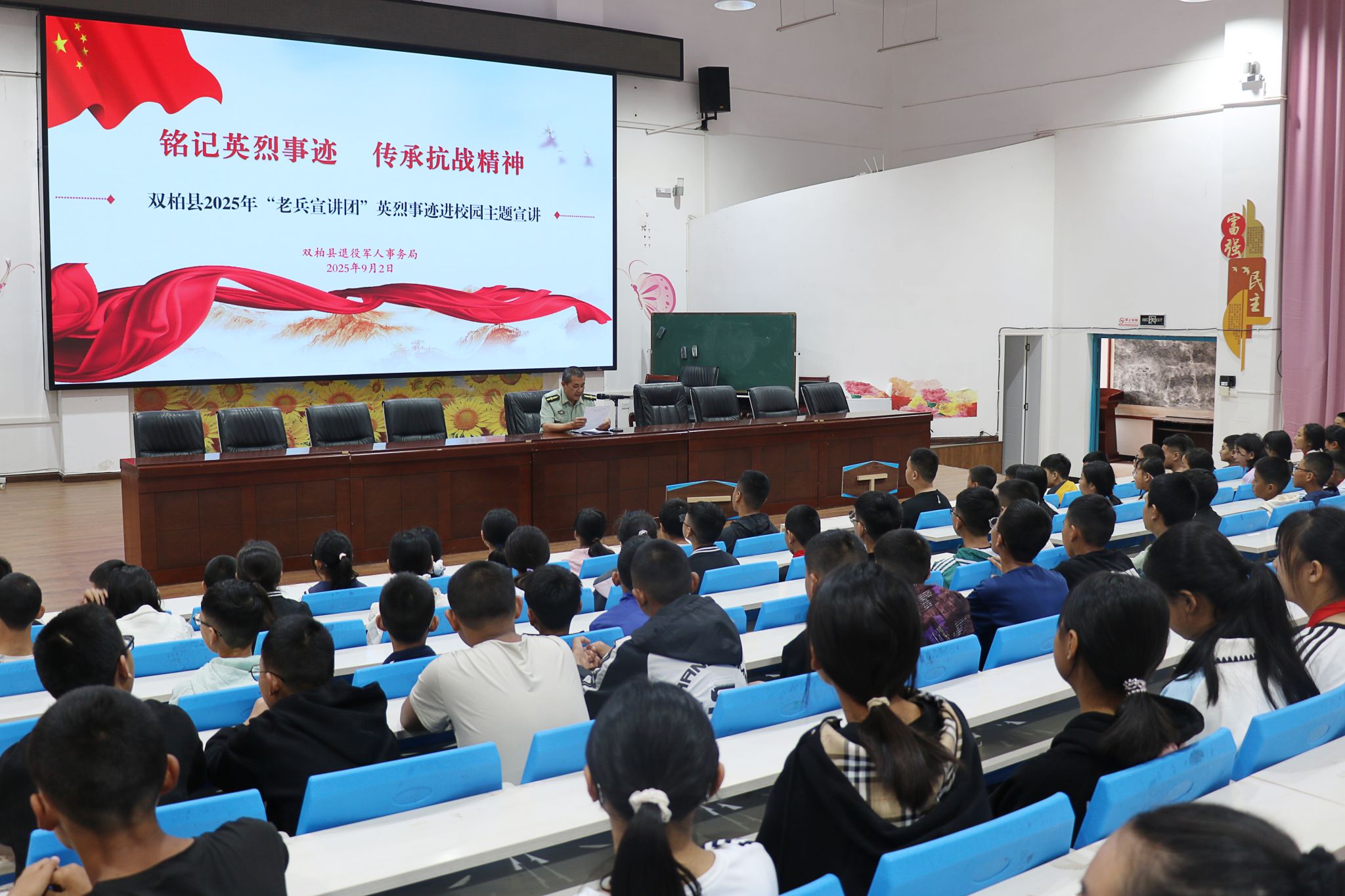 在纪念中国人民抗日战争暨世界反法西斯战争胜利80周年之际,双柏县广泛开展群众性纪念活动。9月2日上午,双柏县退役军人事务局、双柏县妥甸中学结合“红色九月”“开学第一课”活动,联合组织开展以“铭记英烈事迹、传承抗战精神”为主题的宣讲活动。