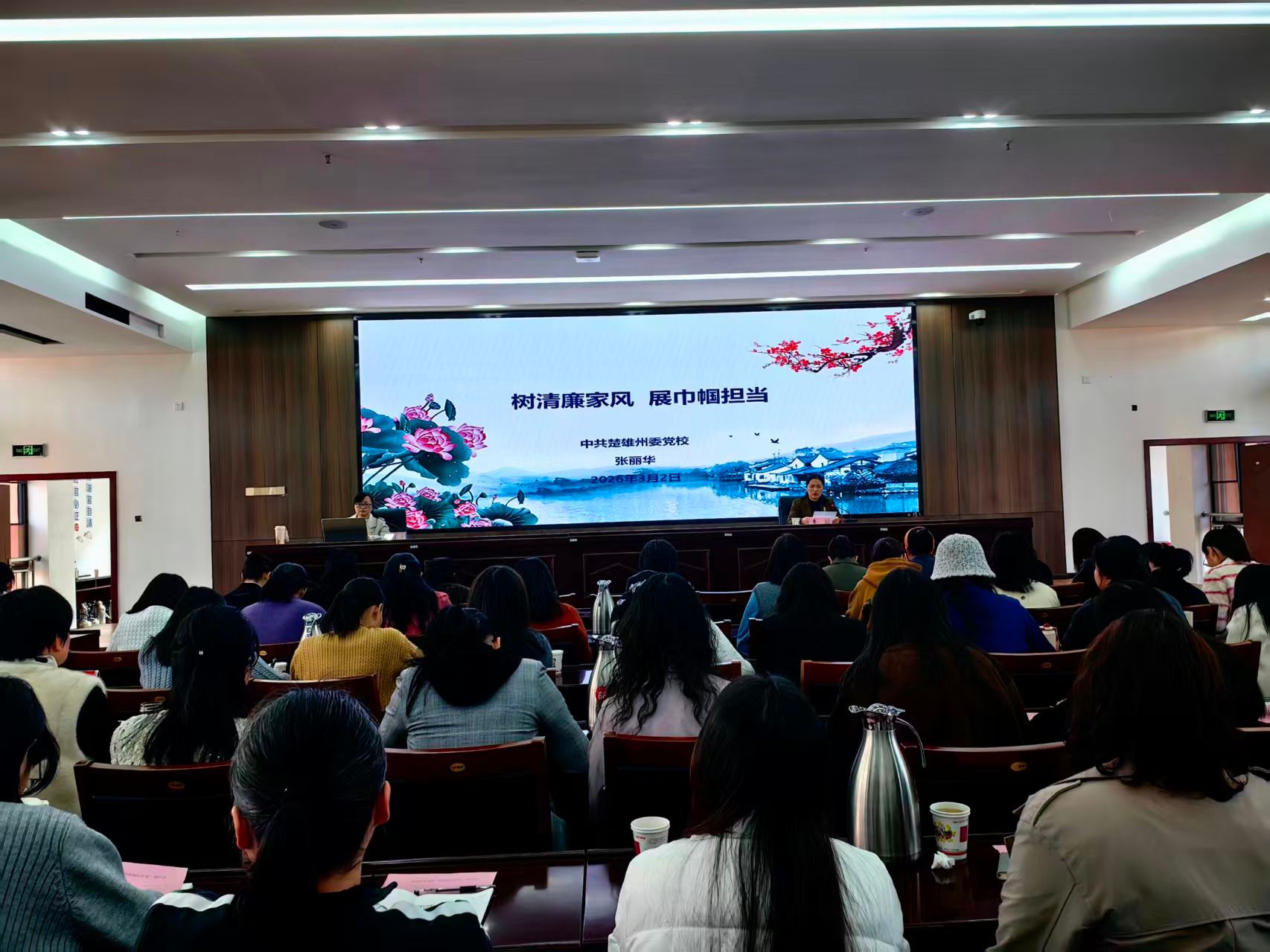 3月2日,双柏县在县委党校二楼报告厅举办庆祝2026年“三八”国际妇女节活动暨“树清廉家风 建和美家庭”专题讲座。县委书记金鸿出席活动并讲话。县人大常委会副主任、县妇联主席李喆主持。县委常委、县委办公室主任杨辉,县人民政府副县长李志强,县政协副主席苏燕出席活动。