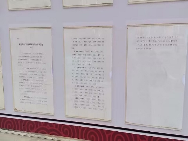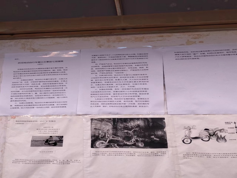 张贴过程中,大队宣传员就《防范电动自行车棚火灾事故七项措施》的内容和要求,对各物业单位工作人员进行了耐心地讲解指导,并要求各单位要始终把消防安全工作放在重要位置,要严格按照《防范电动自行车棚火灾事故七项措施》内容,加强消防安全管理,认真开展防火巡查检查,每月对车棚的充电设施、消防设施等设施设备开展全面检查,及时消除各类安全隐患,确保小区消防安全形势稳定。同时,宣传人员提醒各单位消防安全管理人员,要对电动自行车占堵消防通道、安全出口,私接电线充电,长时间过度充电等行为及时进行劝阻,及时清理久放不用的“僵尸”车辆。利用社区宣传栏、楼宇电视、户外大屏等载体,常态化开展电动自行车火灾案例警示性宣传和消防安全科普教育,努力营造“群防群治”的良好氛围,使消防安全知识和消防安全意识更深地扎根在每个人的心中。