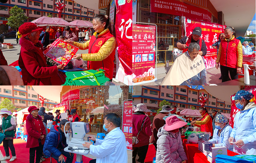 为大力弘扬中华民族尊老敬老的传统美德,持续营造关爱老年人、尊敬老年人、爱护老年人的浓厚氛围,在新春佳节来临之际,双柏县民政局牵头开展2024年“文明风尚暖人心、喜庆祥和迎龙年”爱心义剪志愿服务活动,双柏长晟中央广场、双柏尚购超市、双柏全友家居、双柏尚艺造型、双柏雅洁口腔医疗服务有限公司、双柏复明眼镜等爱心企业共同参与活动。
