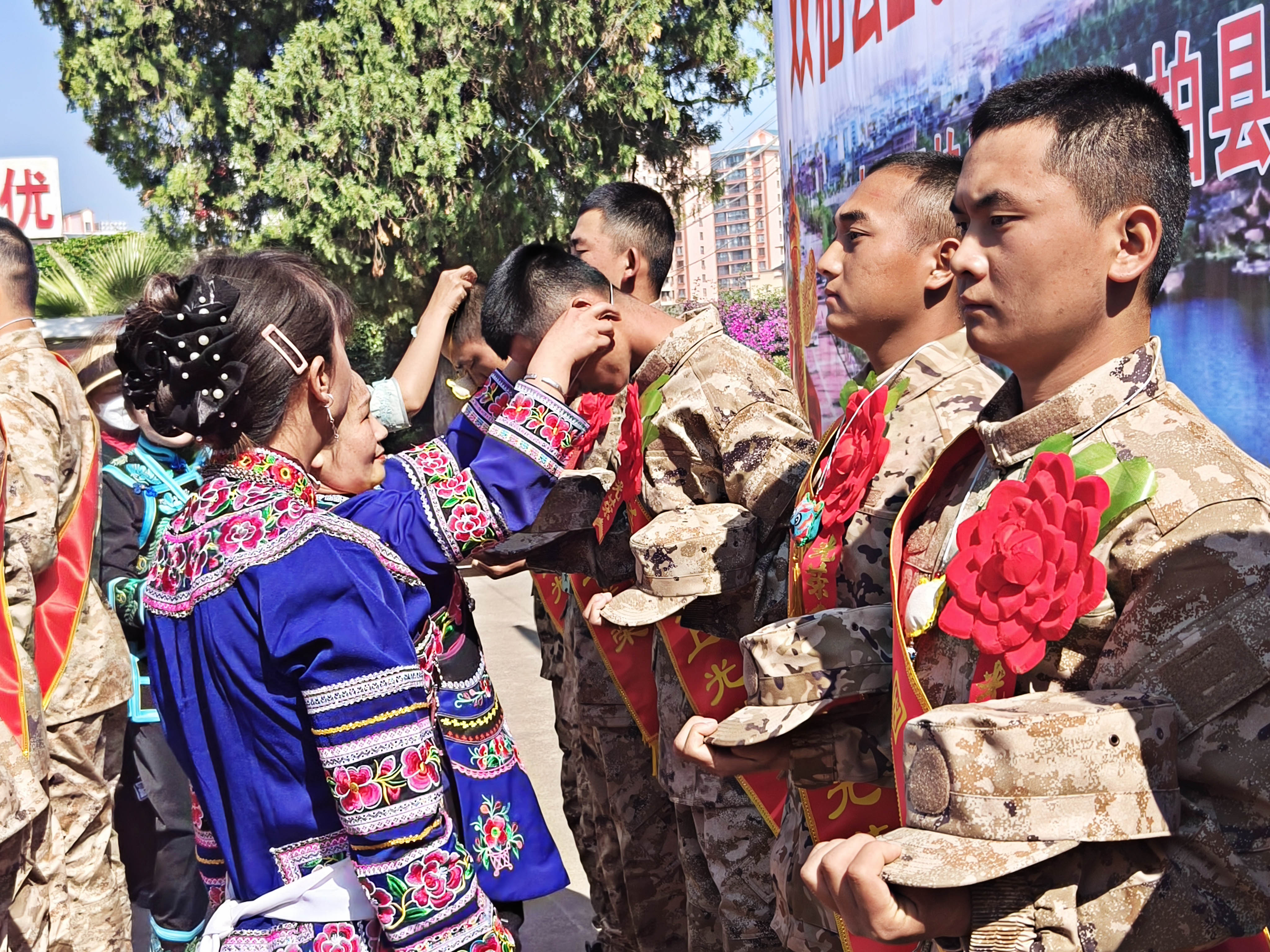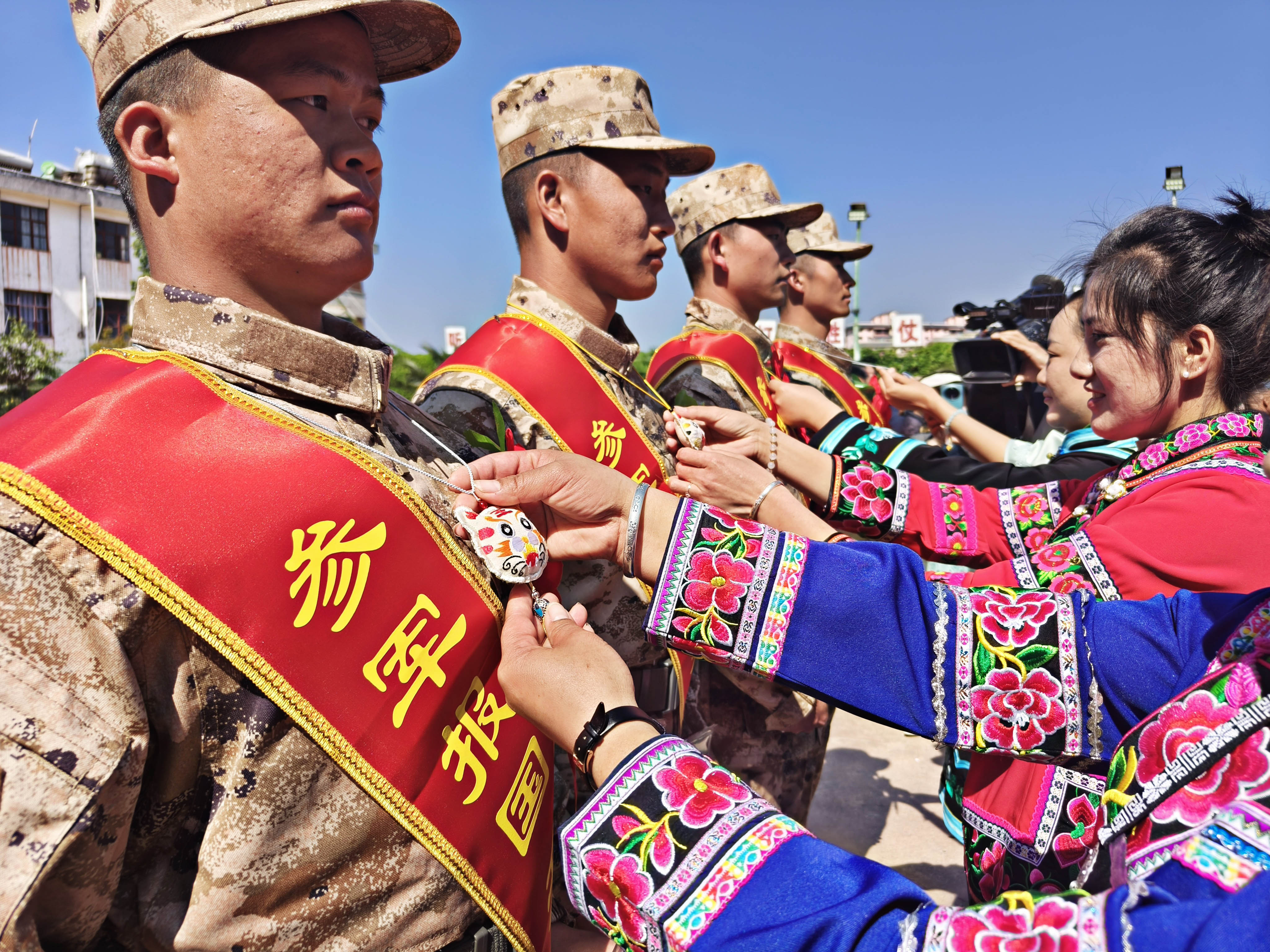 虽然只是一个小小的彝绣荷包,但它承载着家乡父老乡亲满满的爱意和殷切期望,同时深刻的表达了“绣娘”们的拥军之情,希望即将启程的孩子们时刻牢记国家和人民的利益高于一切,坚定信念,奋勇拼搏,发扬好双柏好男儿能吃苦,能战斗的精神,争取早日把自己塑造成为一名“听党指挥、能打胜仗、作风优良”的新时代军人,以良好的作风、过硬的素质、崭新的面貌和优异的成绩,为祖国国防建设作出自己的贡献。