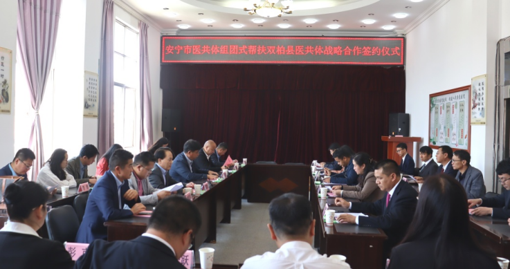 3月24日上午,安宁市医共体组团式帮扶双柏县医共体战略合作及昆明理工大学附属安宁市第一人民医院疼痛科陈雪松、杨富松专家团队工作站签约、授牌仪式在双柏县医共体总医院县人民医院举行。