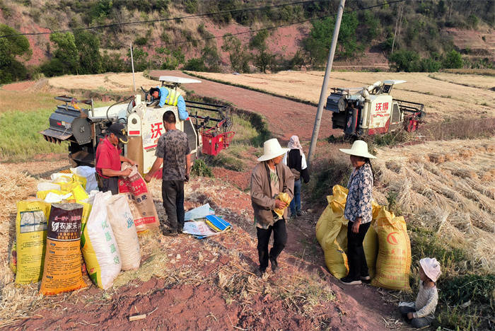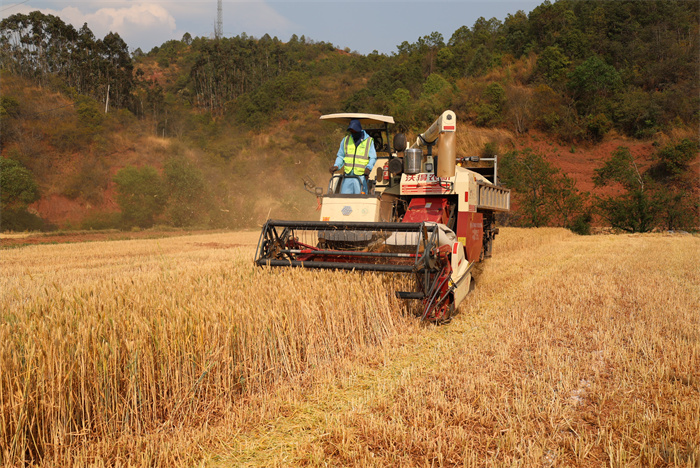 4月中旬双柏县进入“打麦子”收尾期,妥甸镇麦地新村委会麦地新村、大村、旧地基村400多亩麦子丰收“遇难题”,村里的青壮年劳动力长期外出打工,打麦子“请工换伴”找不到人,双柏县农业机械技术推广站得知情况后,迅速向楚雄市子午镇跨区调集3台沃得尊享4LZ6.0联合收割机驰援,一天半时间400多亩麦子机收归仓。麦地新村民纷纷表示“机器打麦子就是快,一丘麦子半小时,以前人收太费力气,两三天都割不完……”。