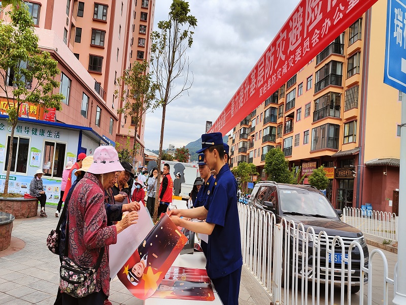 5月11日上午,双柏县多部门联合在长晟广场集中开展防灾减灾日宣传活动。