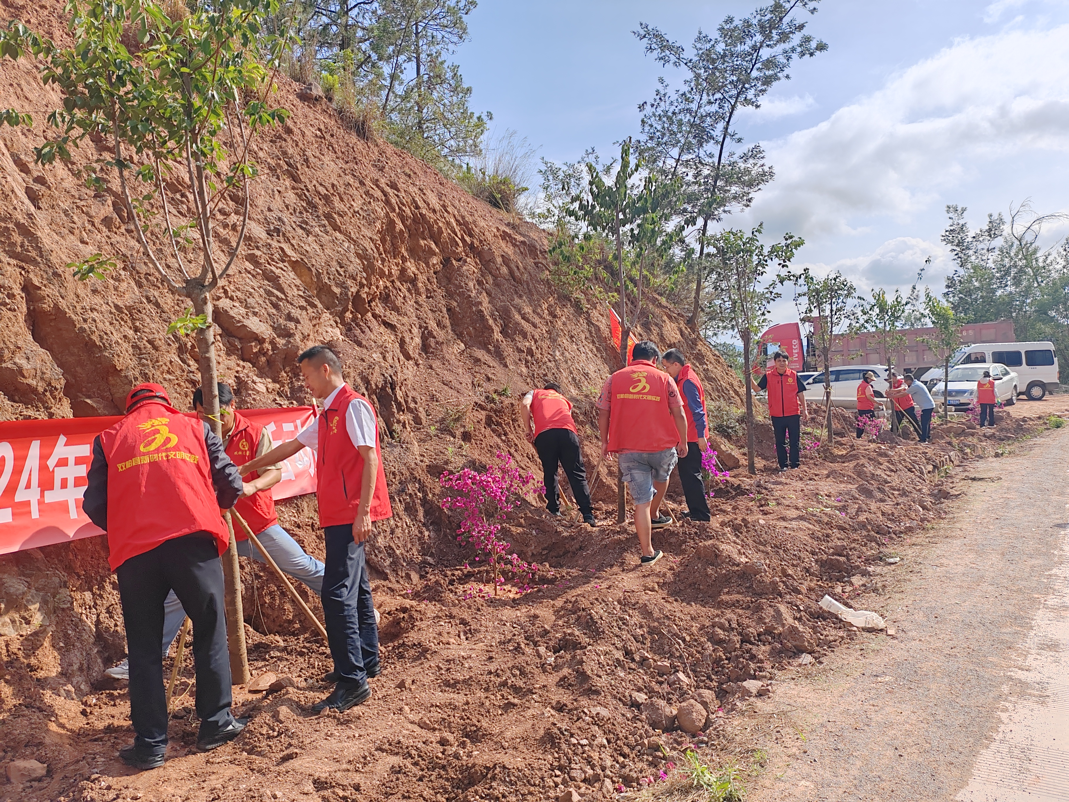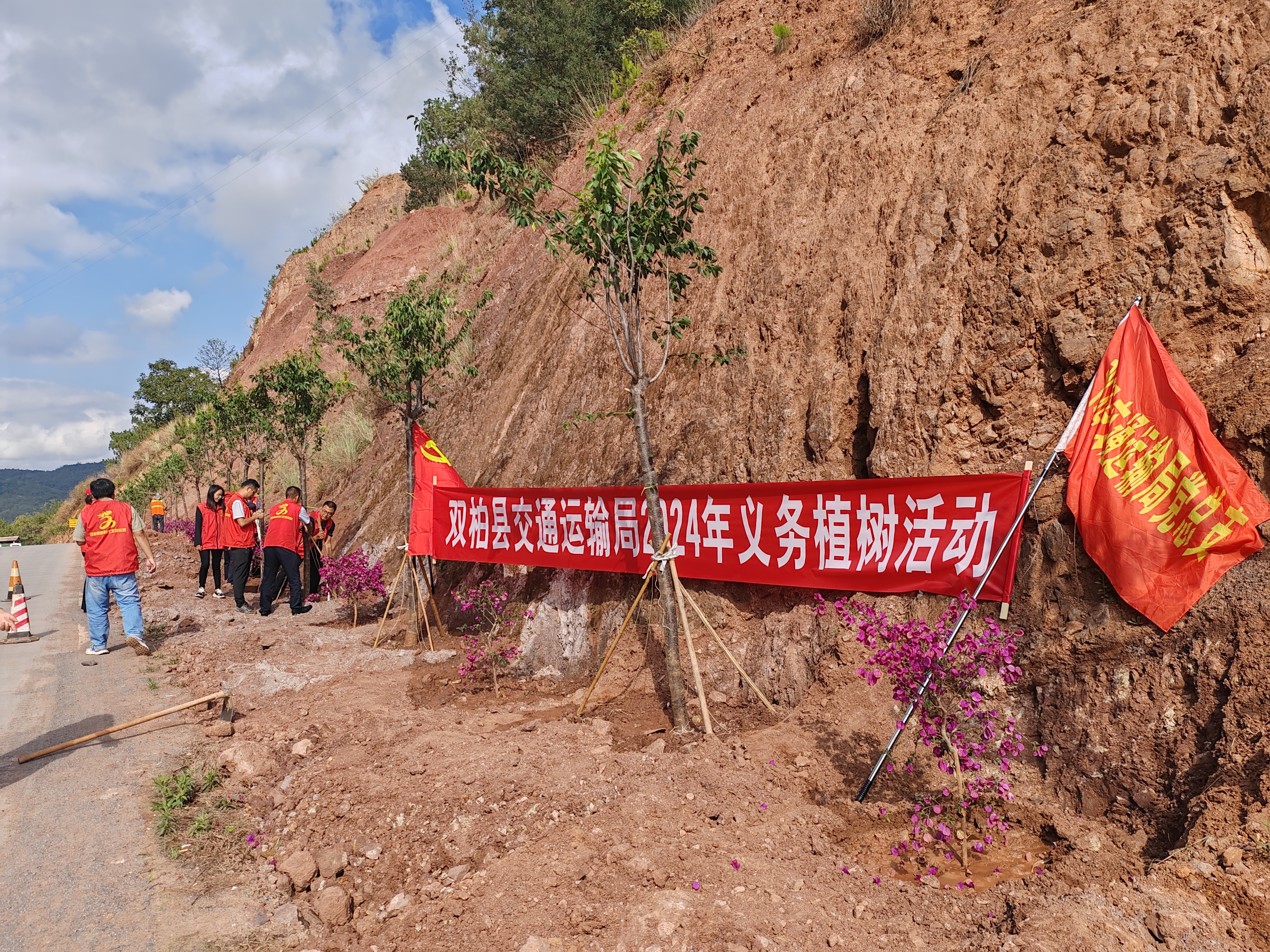 “种竹交加翠,栽桃烂熳红”。5月31日双柏县交通运输局2024年义务植树活动拉开序幕,局机关、县地方公路管理段全体干部职工积极参与,吹响了植绿号角,在茶叶箐至登高山公路沿线栽种云南樱花、叶子花等苗木,充分发挥党员干部的积极性,以实际行动践行习近平生态文明思想,为绿美交通再添新绿、再增新苗,助推“绿美交通”三年行动圆满收官。