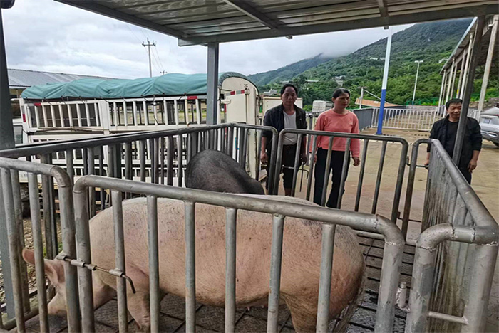 双柏县鄂嘉镇牲畜交易市场建成后,何大姐为打造“航空母舰”,将双柏肥猪直销重庆、贵州等消费区,在双柏组建了双柏县晟鸿农牧发展有限公司,并于2024年4月正式入驻鄂嘉牲畜交易市场。老包是本地人,他的牲畜就可以就地就近卖到市场,而且他卖的牲畜品质好,价格适中,快人快语。何大姐对老包说:“老包,您不是“钉子户”,您是我们的优质客户,您的货有多少,我们就要多少,价格从优”。