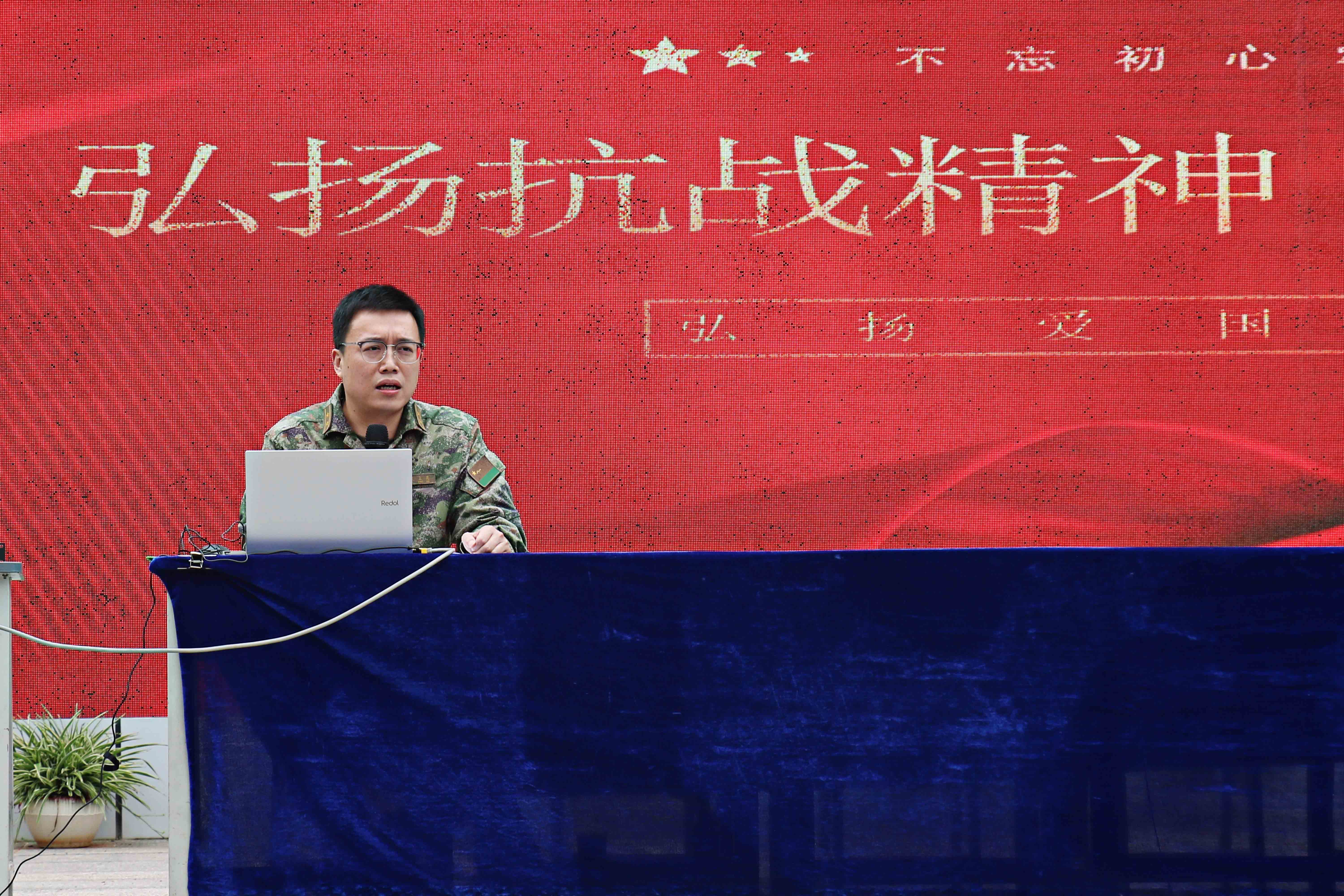 活动上,县人武部副部长左上昆同志以《弘扬抗战精神 强化爱国情怀》为题,向妥甸中学2024级700余名新生讲述了从1931年9月18日“九一八”事变开始,到1945年9月9日中国战区日军投降签字仪式,中华民族同仇敌忾、不屈不挠,最终取得抗日战争伟大胜利的壮丽史诗和苦难历程背后的辉煌意义。同时,希望同学们要牢记爱国主义是中华儿女共同的精神底色,要强化忧患意识、危机意识、使命意识。并寄语同学们要把强烈的爱国主义转化成为强大的精神动力,要把“爱国”作为第一要义、把“奋斗”作为基本态度、把“好学”作为成长途径,倍加珍惜学习的黄金时期,努力做到勤学、苦学、真学,使自己成为知识渊博的人、素质全面的人、紧跟时代的人,成为未来可堪大用的栋梁之材。