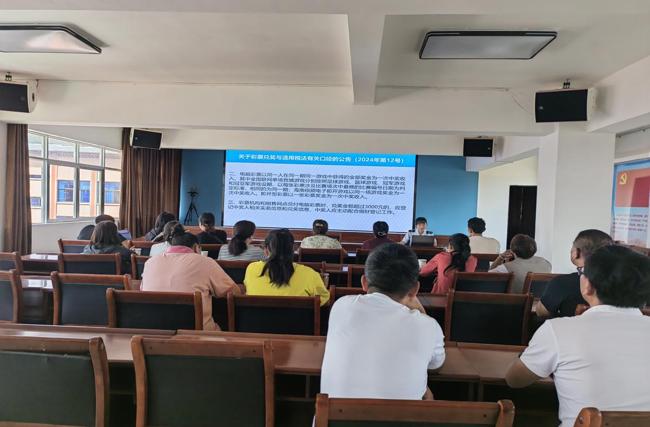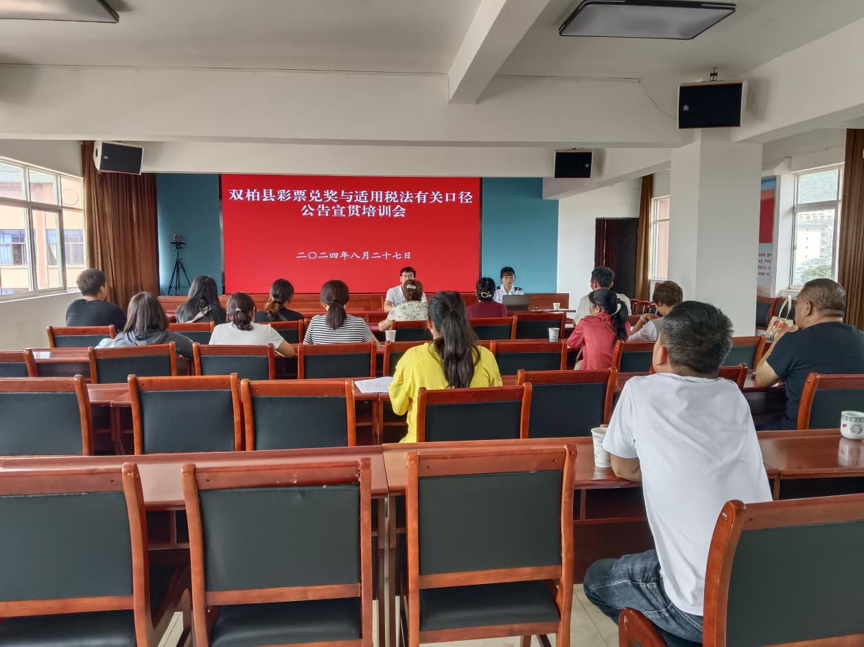 为贯彻落实《关于彩票兑奖与适用税法有关口径的公告》要求,确保彩票兑奖与适用税法有关口径相关工作有序开展,切实维护广大购彩者与中奖者的切身利益,8月27日下午,双柏县民政局召开彩票兑奖与适用税法有关口径公告宣贯培训会,辖区内15家销售网点业主或销售员参加培训。