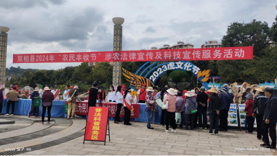 根据中共双柏县委农村工作领导小组《关于印发双柏县2024年“农民丰收节”活动方案》有关要求,9月22日,县林业和草原局积极参加涉农法律和科技宣传服务活动。