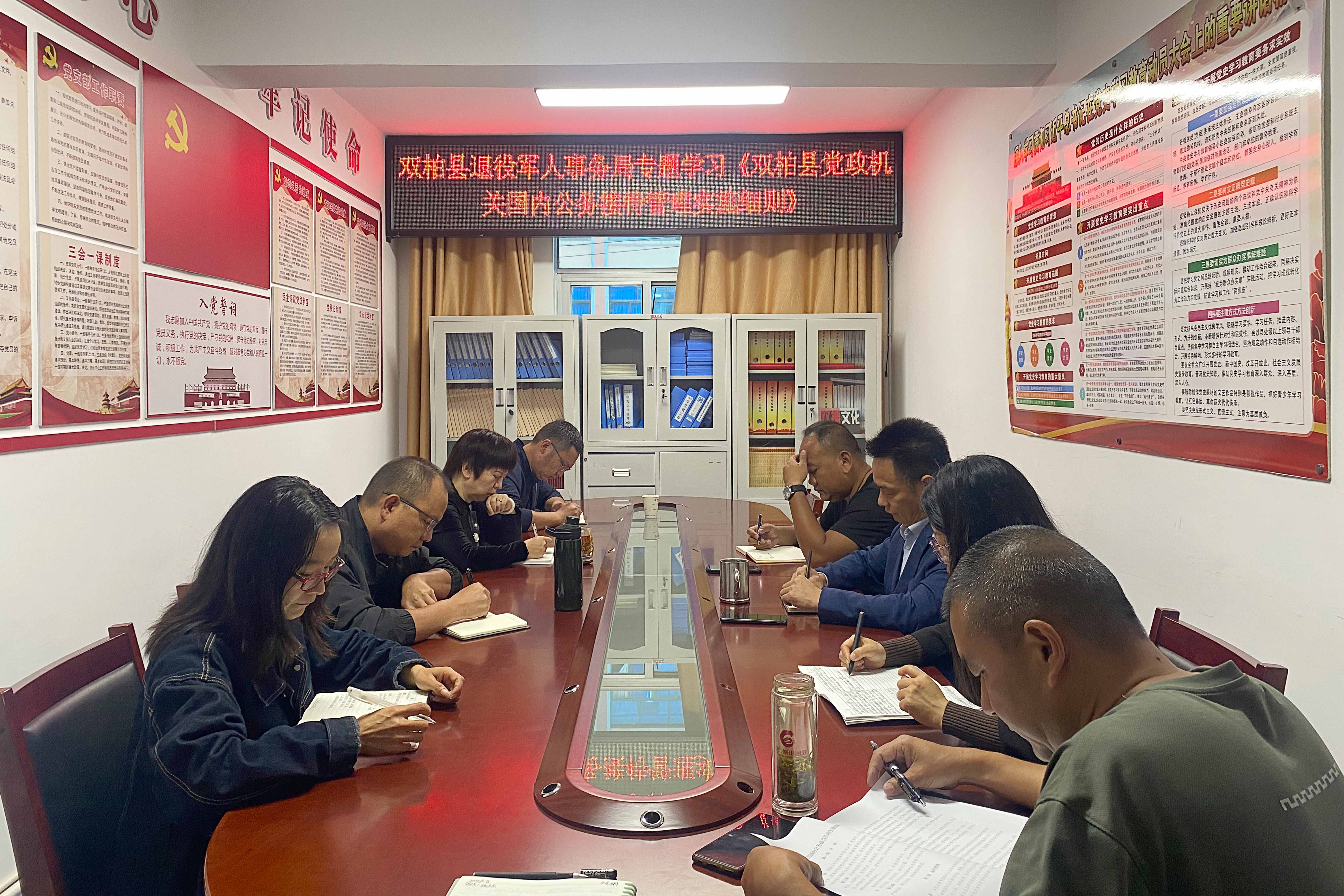 为一步规范全局公务接待管理工作,严肃接待纪律,厉行勤俭节约,反对铺张浪费,加强党风廉政建设。10月8日,县退役军人事务局组织召开会议,专题学习《双柏县党政机关国内公务接待管理实施细则》,会议由党组书记、局长王忠明主持,全体干部职工参加。