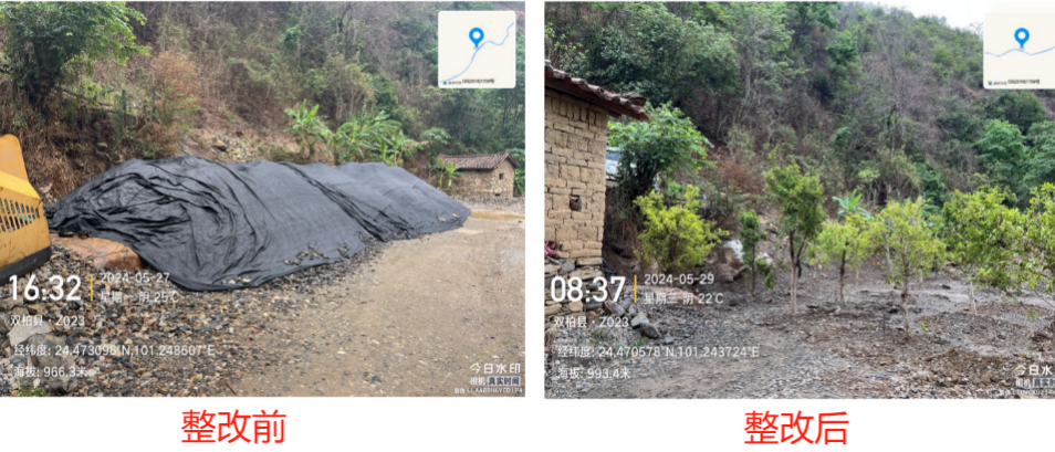 2024年5月27日向“老鹰洞”河道采石的当事人发出责令整改通知书。2024年5月29日已清理“老鹰洞”河道约21方砂石,疏通河道,共种植青树80株、芭蕉31株。封闭大岭岗村历史遗留采石点及进场道路,共种植核桃106株,麻栗树403株,恢复1.32亩林地。问题整改完成后,双柏县对周边群众进行了满意度调查,发出《中央第七生态环境保护督察组交办双柏县举报件办理情况问卷调查表》41份,收回41份,其中,满意41份,不满意0份,满意率100%。