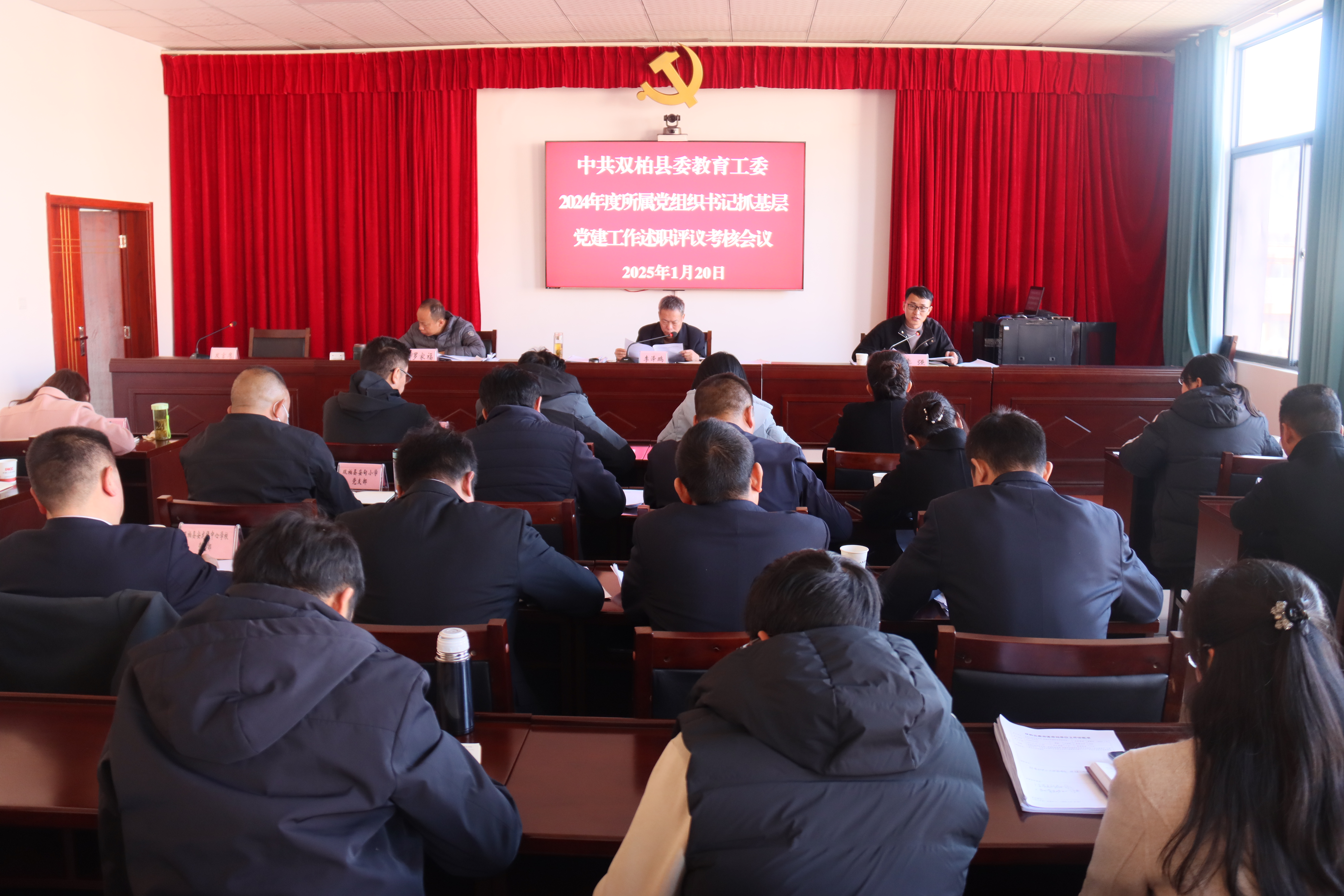 1月20日下午,中共双柏县委教育工委召开2024年度党组织书记抓基层党建工作述职评议考核会议。县委组织部副部长李强到会指导。县委教育工委常务副书记,县教育体育局党组书记、局长李泽鹏主持会议。