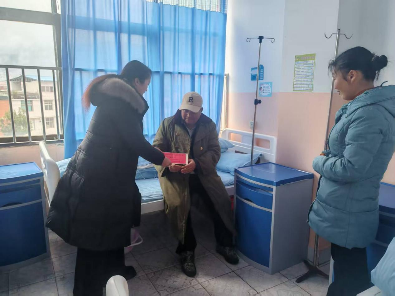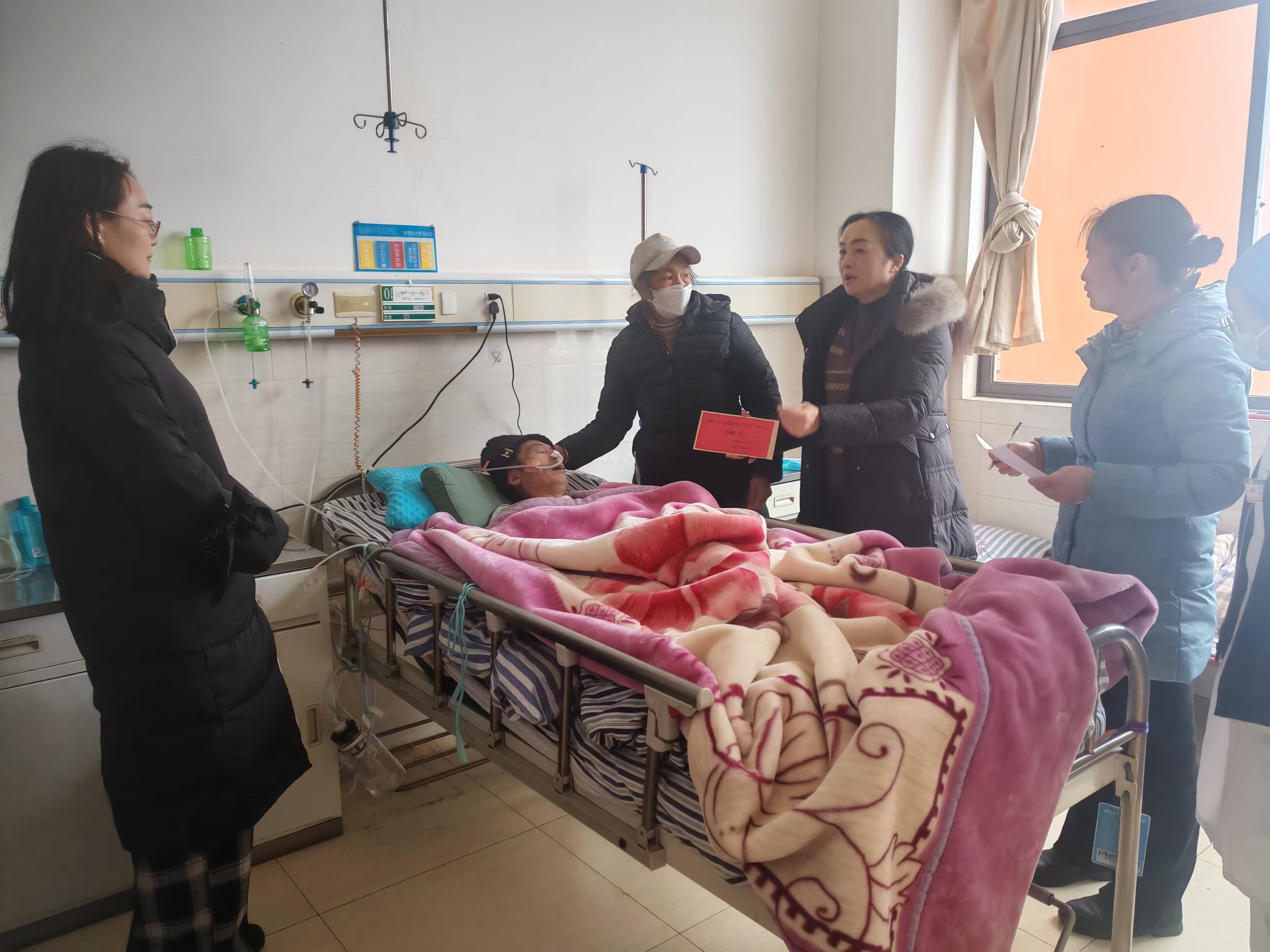 期间,县民政局、县卫健局还看望慰问了在县人民医院、县妇幼保健院、县中医医院、润康医院、中医院住院的100户困难群众,了解住院病人的治疗情况和身体恢复情况,鼓励他们保持乐观向上的生活态度,积极治疗,争取早日康复。