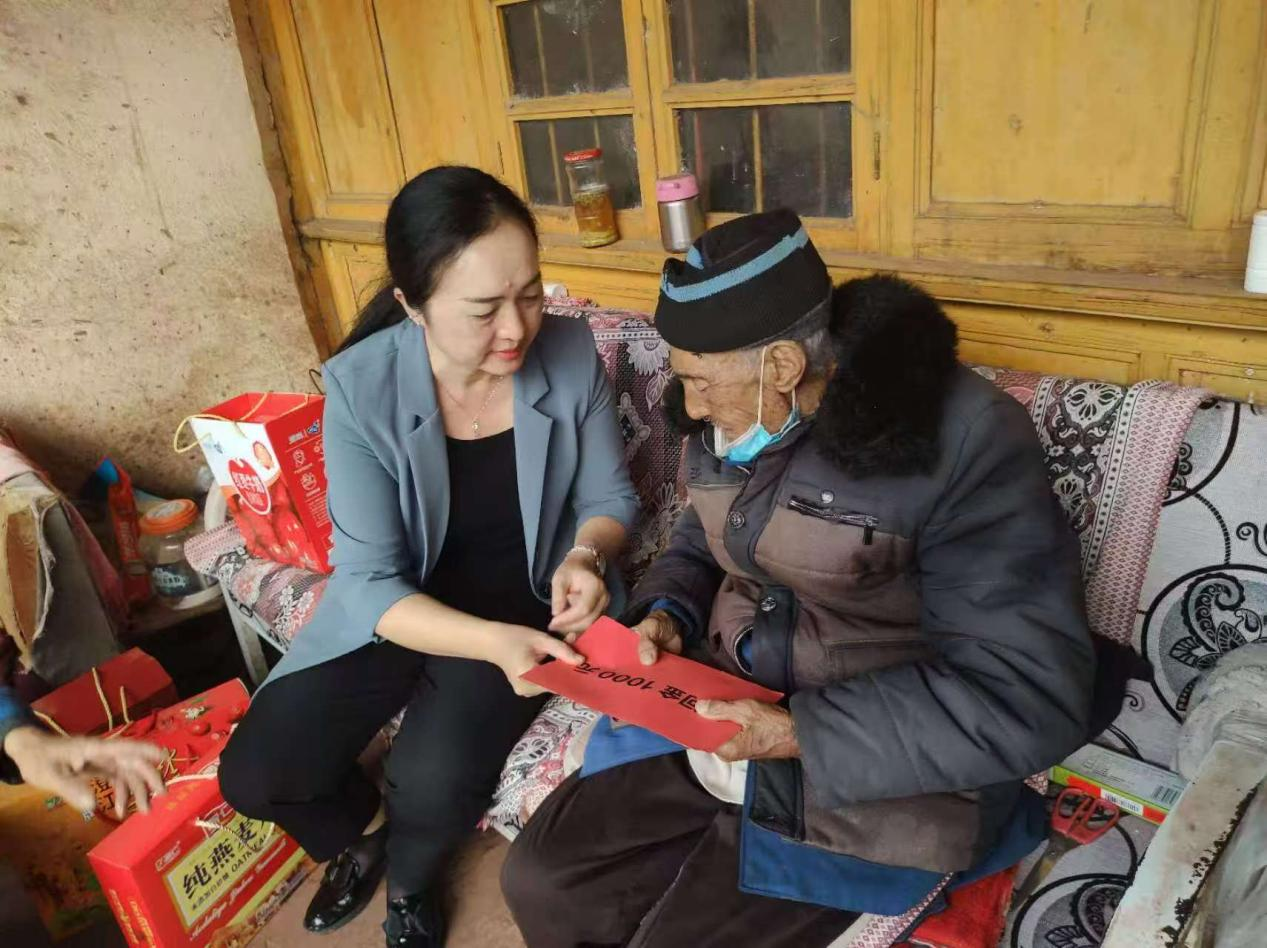 1月23日,县人民政府副县长滕磊深入妥甸镇敬老院、大庄镇敬老院看望慰问集中供养老人,先后查看了敬老院的安防设施、食堂、宿舍及活动场所,详细了解老人们的生活起居情况和身体状况,对敬老院工作人员的辛勤付出致以衷心的感谢和敬意,并分别向2所敬老院送上3000元的慰问金和慰问品以及新春的祝福。县民政局、妥甸镇、大庄镇有关同志参加慰问。