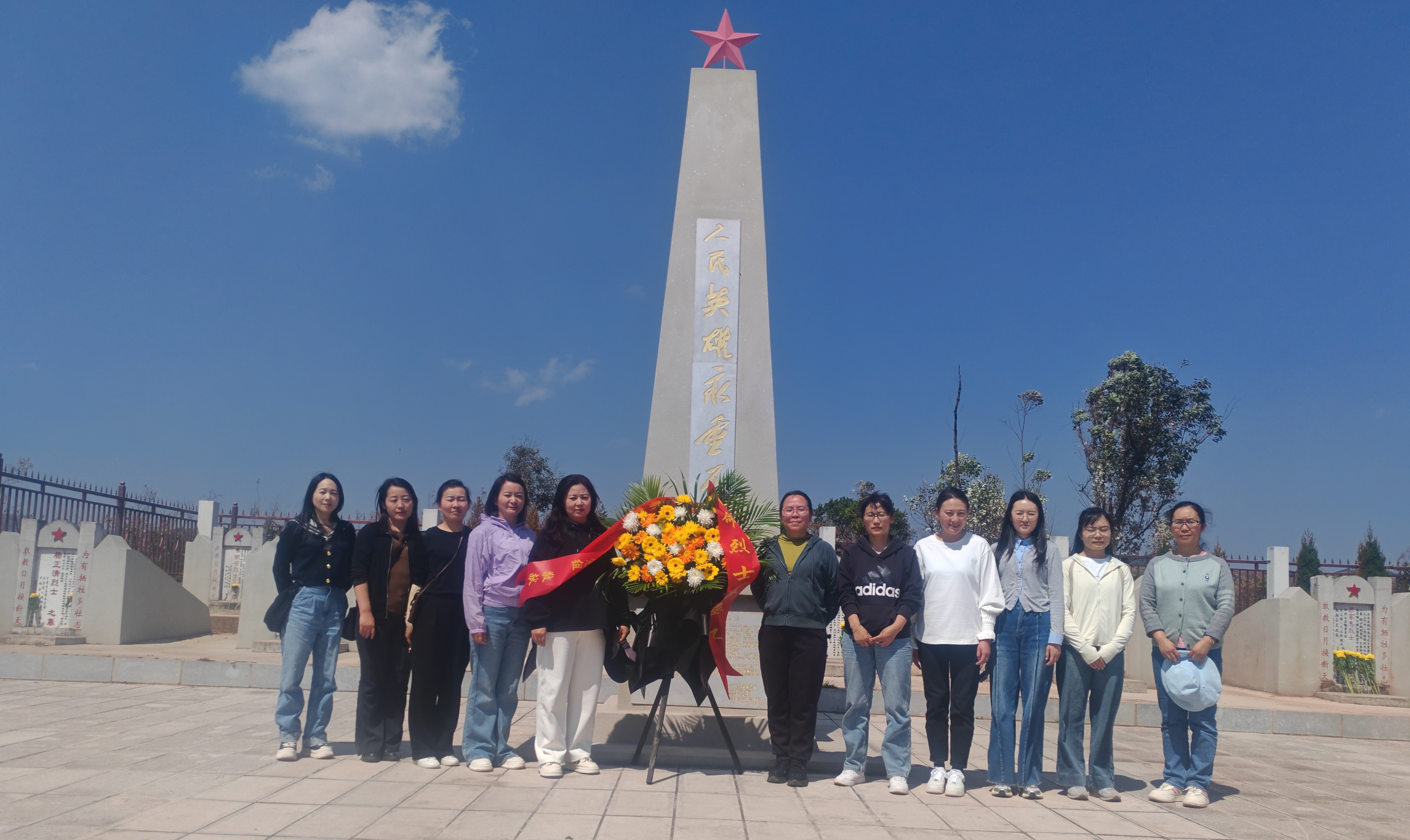 登上陵园长梯,全体女职工在纪念碑前肃立。春风裹挟着远处松涛声掠过耳际,阳光为“人民英雄永垂不朽”的鎏金大字镀上庄严的辉光。
