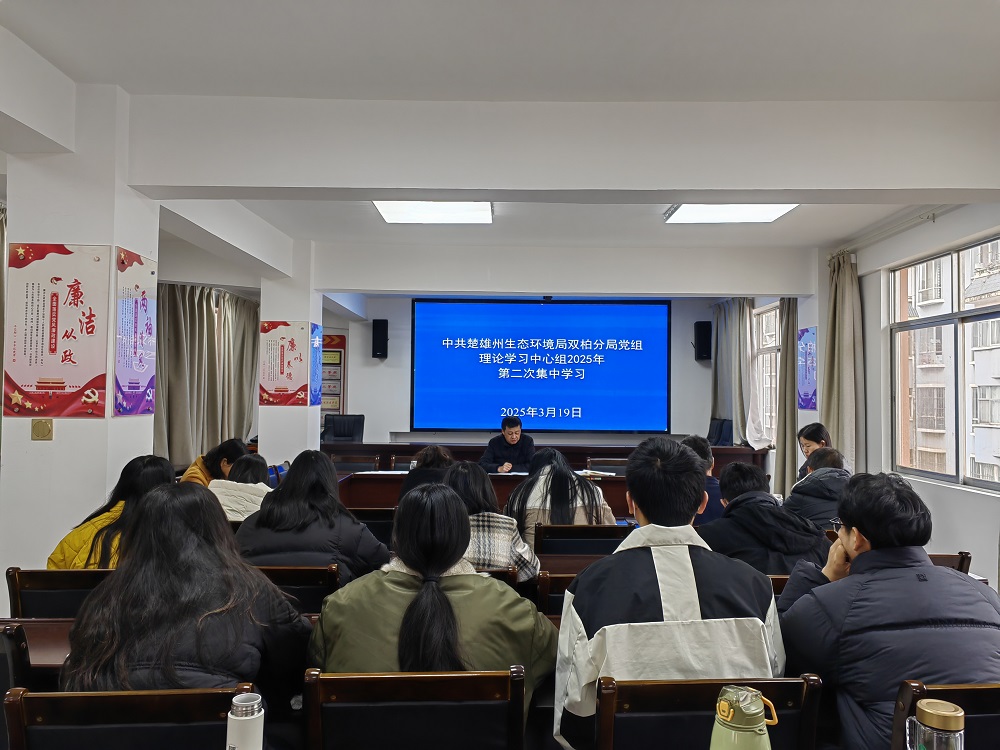 2025年3月19日上午,中共楚雄州生态环境局双柏分局党组举行理论学习中心组2025年第二次集中学习,会议由党组书记、局长李铭主持,全体干部职工参加会议。