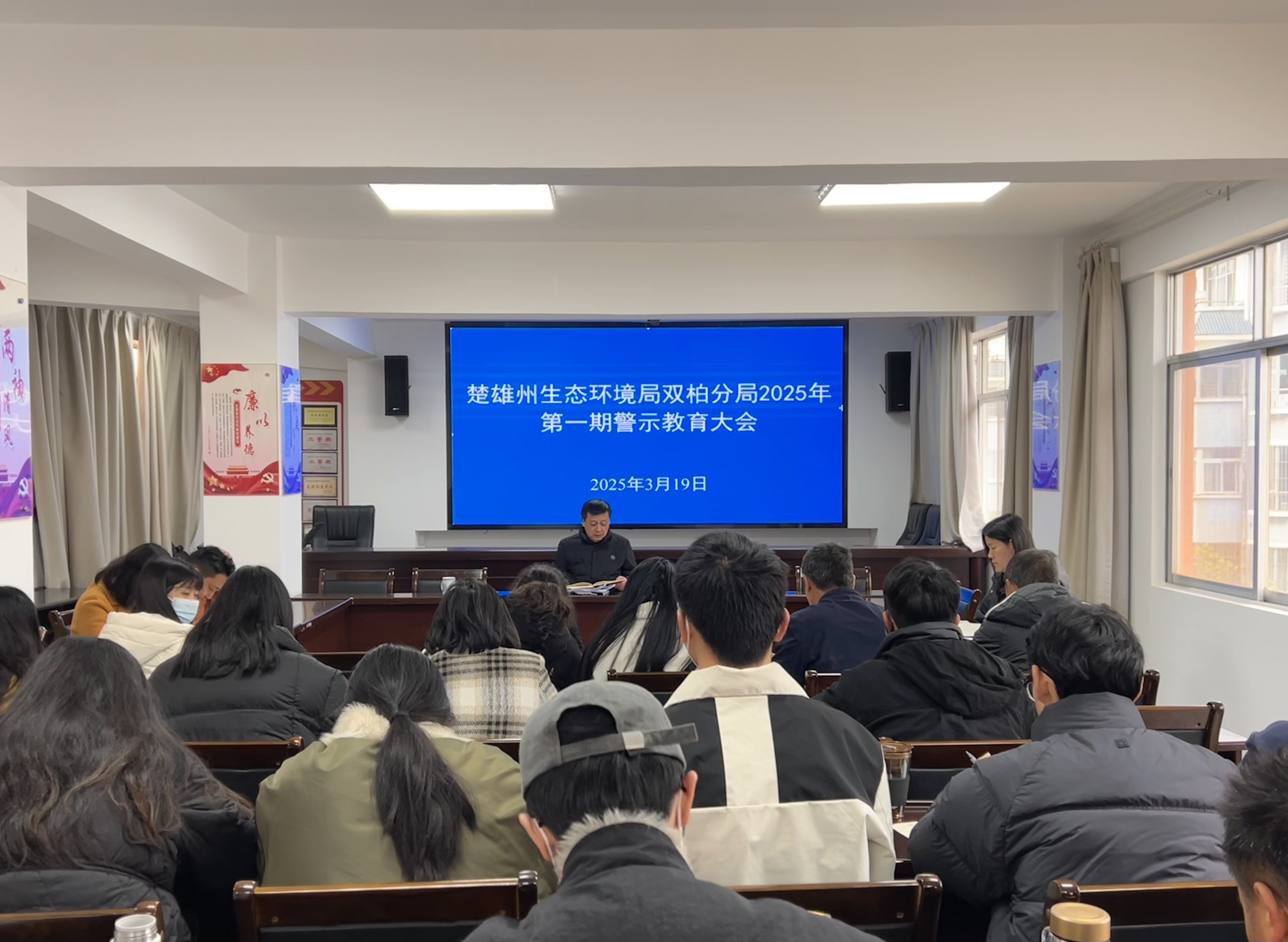 为进一步贯彻落实全面从严治党要求,扎实推进2025年度党风廉政建设,强化党员干部廉洁自律意识。3月19日上午,楚雄州生态环境局双柏分局召开2025年第一期警示教育大会。