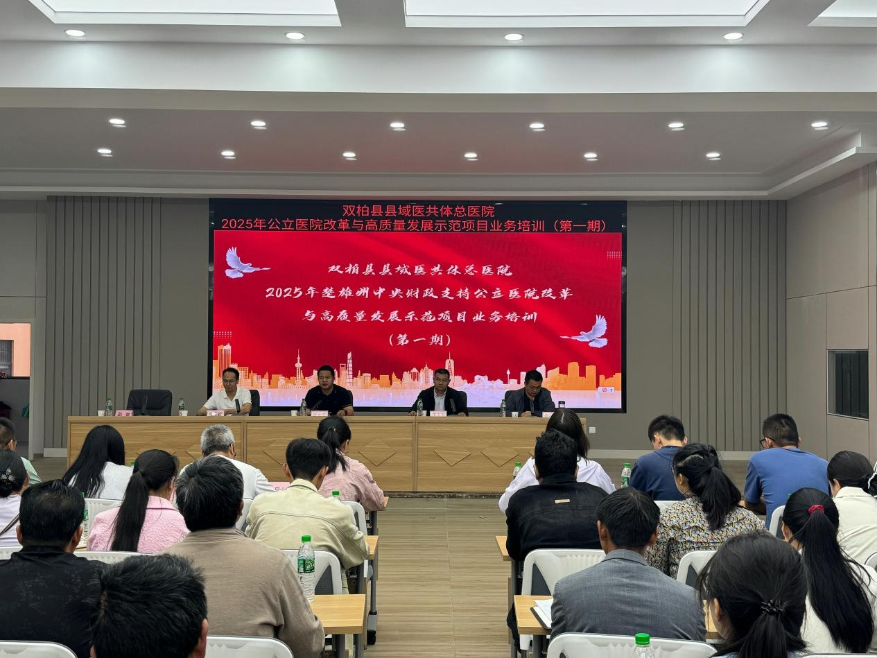 近日,双柏县医共体总医院举行公立医院改革与高质量发展示范项目业务培训,县、乡、村三级医疗卫生机构200余名医务人员参加培训活动,县卫生健康局、县域医共体总医院主要领导、分管领导出席开班仪式。