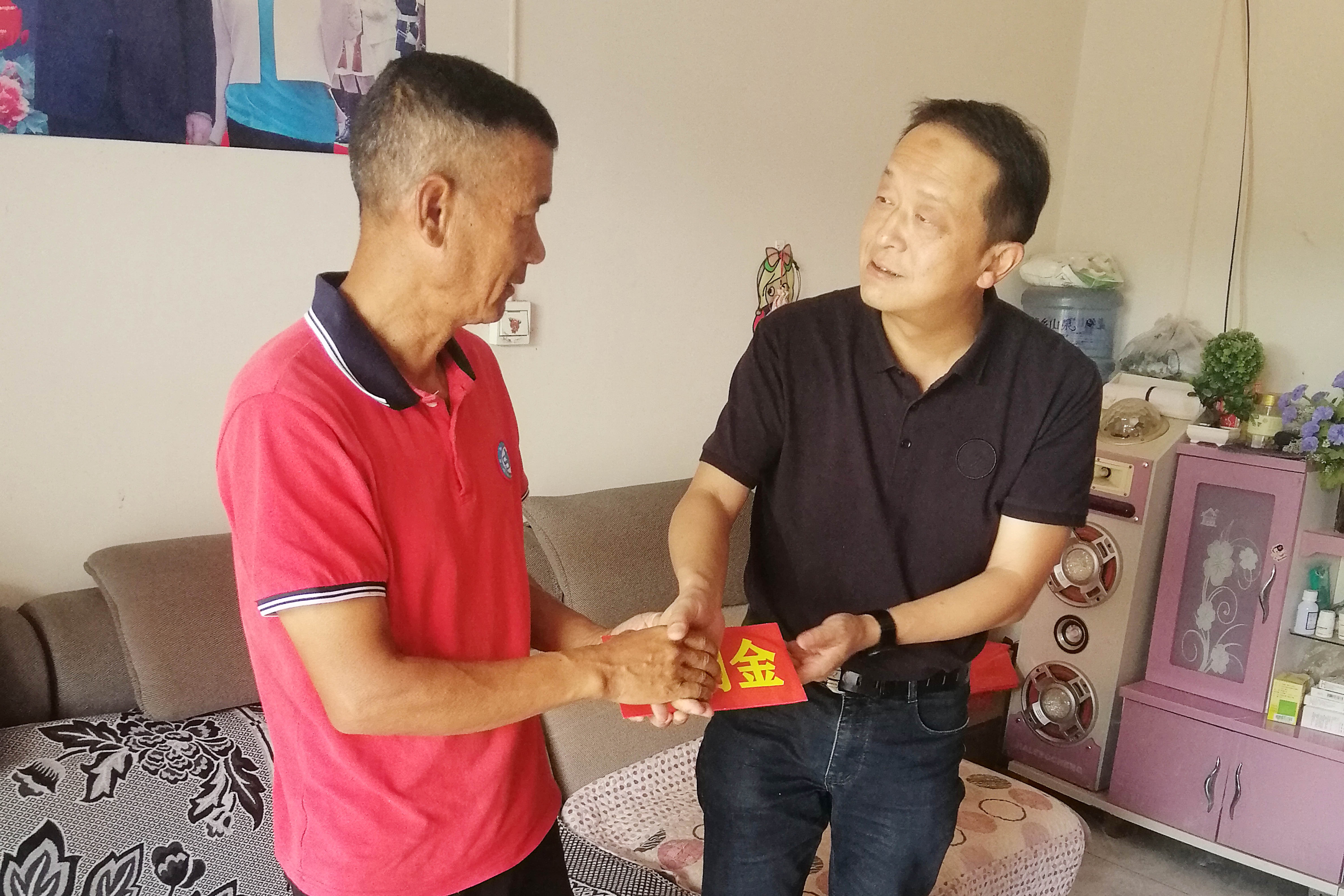 在法脿镇,县退役军人事务局党组成员、副局长张蕾来到雨龙村委会丫干母村杨家祥家中,详细了解他的身体健康状况、家庭经济情况和生活中的实际困难。当了解到他身患胃癌,化疗后需继续用药,经费开支庞大后,耐心开导并鼓励他和家属要积极面对生活,坚定信心战胜困难,并送上“退役军人援助关爱基金”5000元。