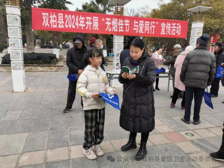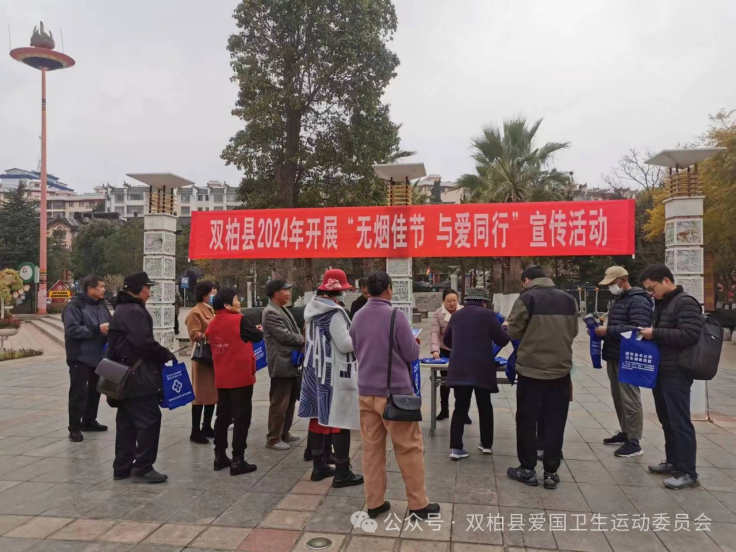 玉兔踏雪辞旧岁,金龙迎春送喜来!值此新春佳节到来之际,走亲访友,人们互赠礼物表达祝福和心意,然而会有部分群众相互赠送烟草制品,为营造节日期间无烟氛围,引导群众践行文明健康绿色环保生活方式,倡导“送烟=送危害”理念。2024年1月23日上午,双柏县卫生健康局在查姆广场组织开展“无烟佳节 与爱同行”宣传活动。