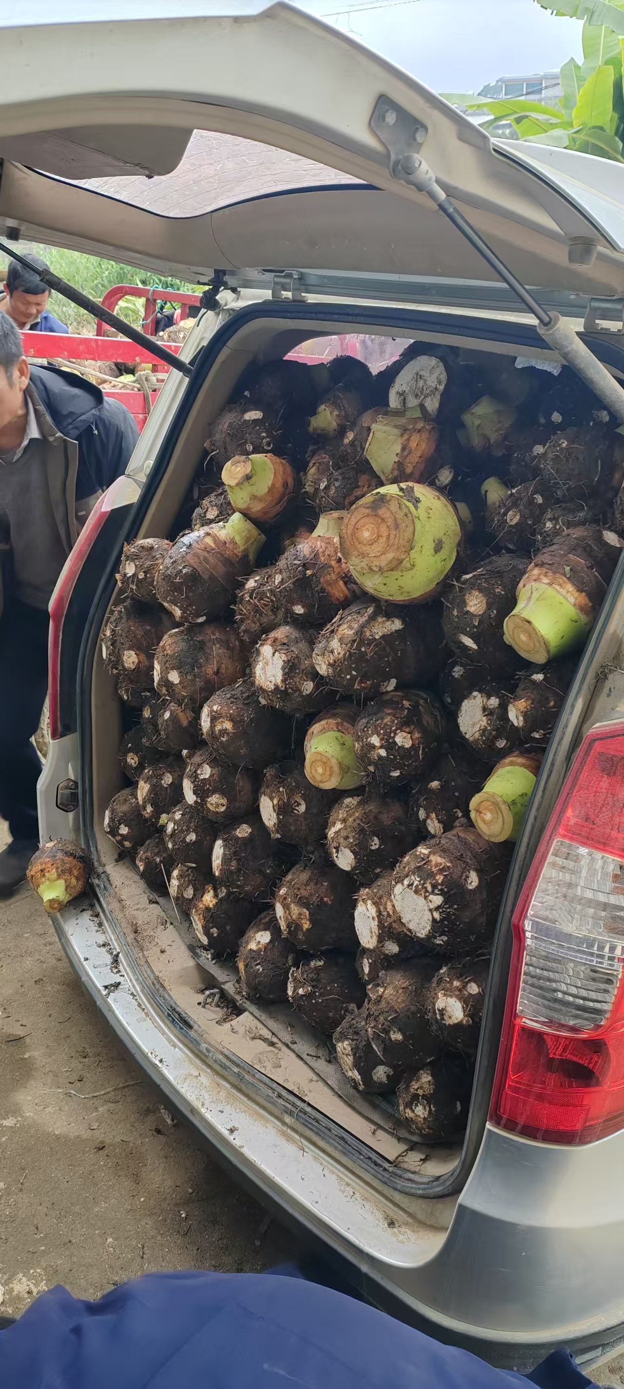 (图为种植户装车运水芋到收购点)