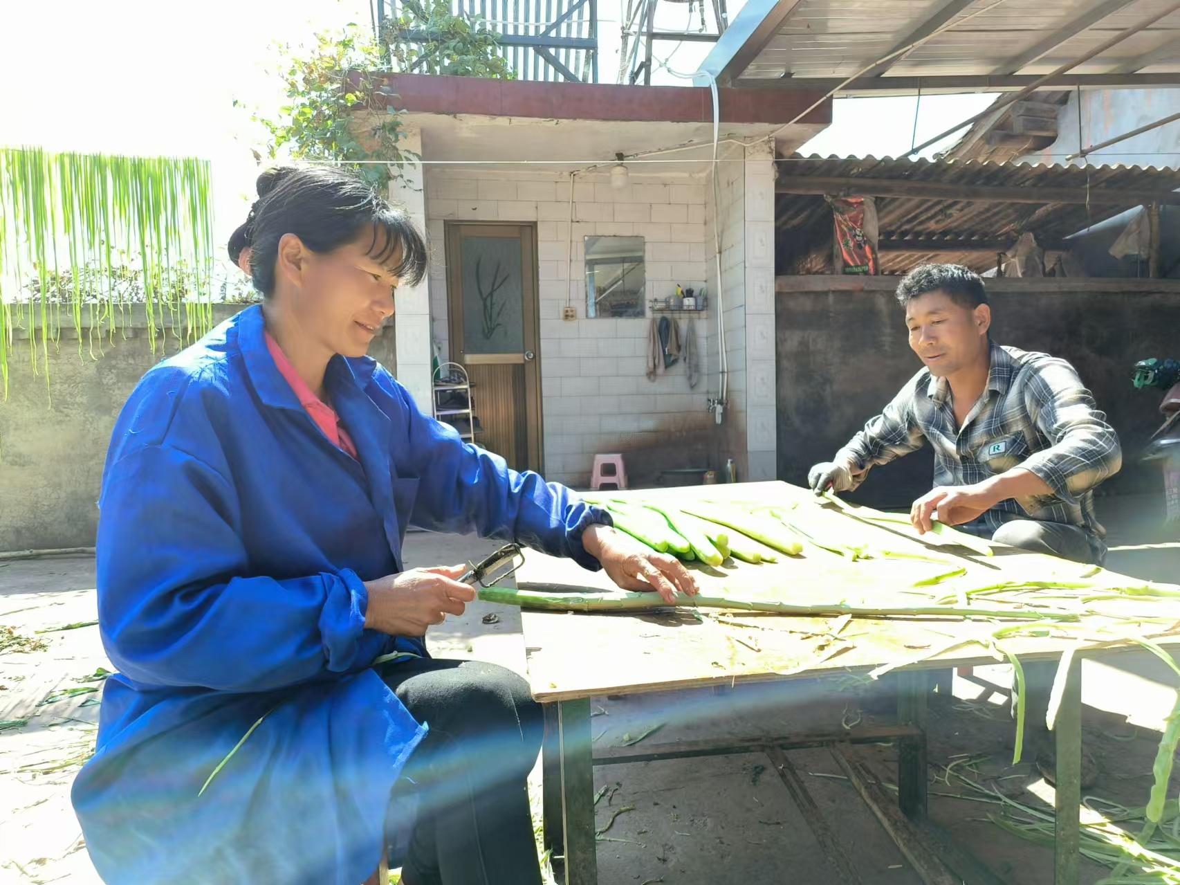 走进爱尼山乡旧哨村委会火烟地村民小组,映入眼帘的是一片片绿油油的贡菜,长势喜人,成为了初春里一道亮丽的风景线。清晨,农户就在田间地头热火朝天地忙着采收贡菜、去叶、去皮、划条、晾晒,每一个步骤都有条不紊,呈现出一片忙碌的景象。