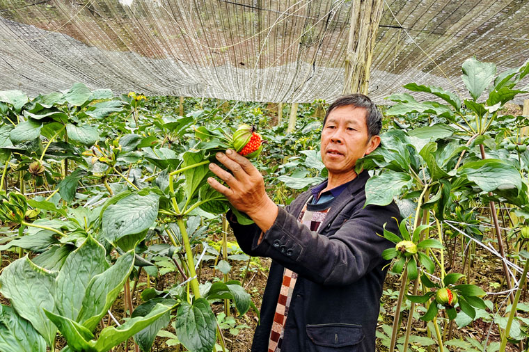 “一开始的时候,我是把重楼从山上挖回来移栽到家里的地里,重楼开花结果了就把种子种下去。后来,自己慢慢摸索出了一套种植方法,现在我家一共种植了40多亩重楼。”回忆与重楼打交道的心路历程,代学明掩面而笑。