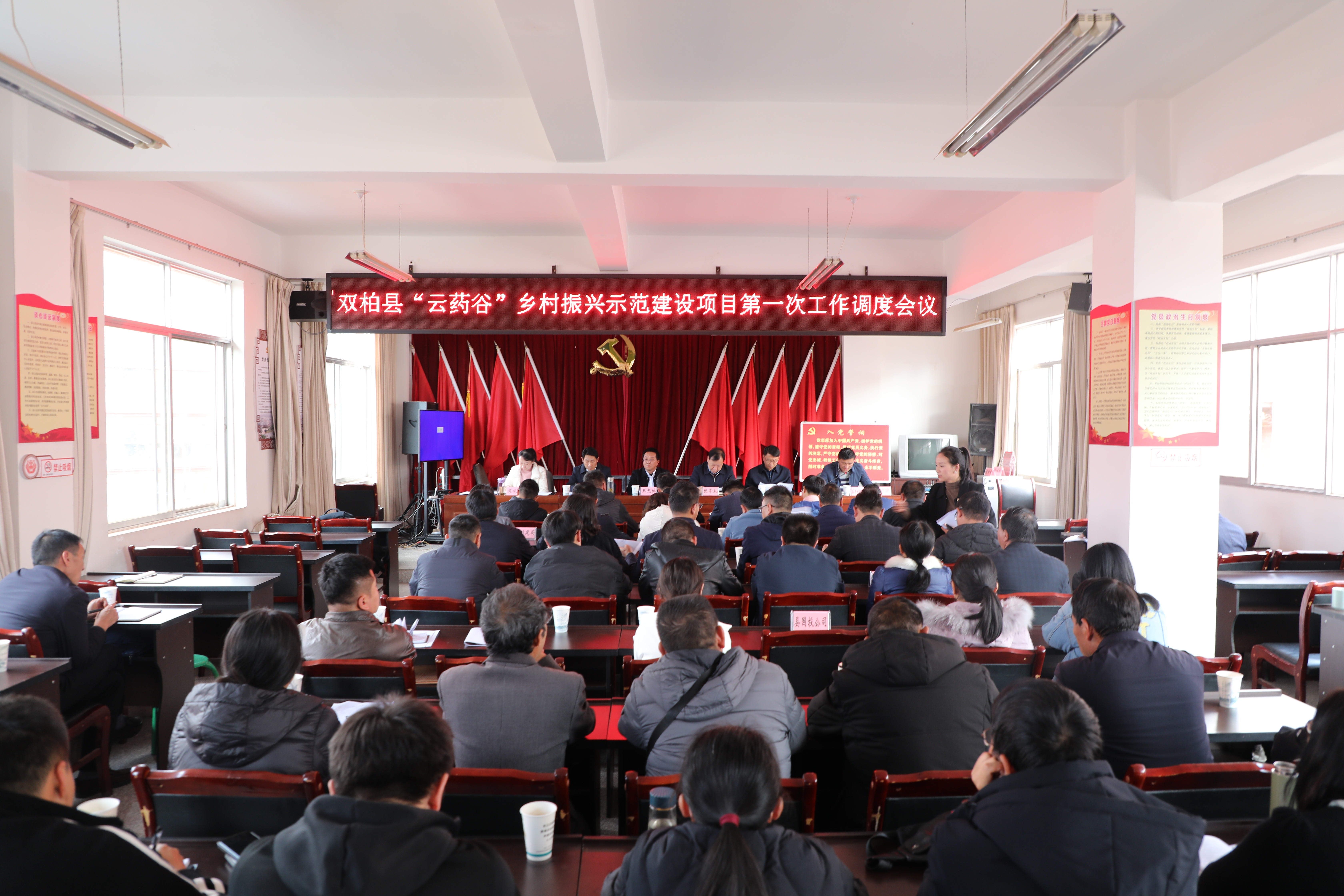 2023年12月1日(星期五)下午,县委副书记王光林同志在西城社区会议室主持召开双柏县“云药谷”乡村振兴示范建设项目工作专班第一次工作调度会议,县处级相关领导、项目专班部门主要领导或常务副职、项目专班坐班人员、妥甸镇相关工作人员、西城社区全体工作人员、项目区村民小组长共计88人参加会议。
