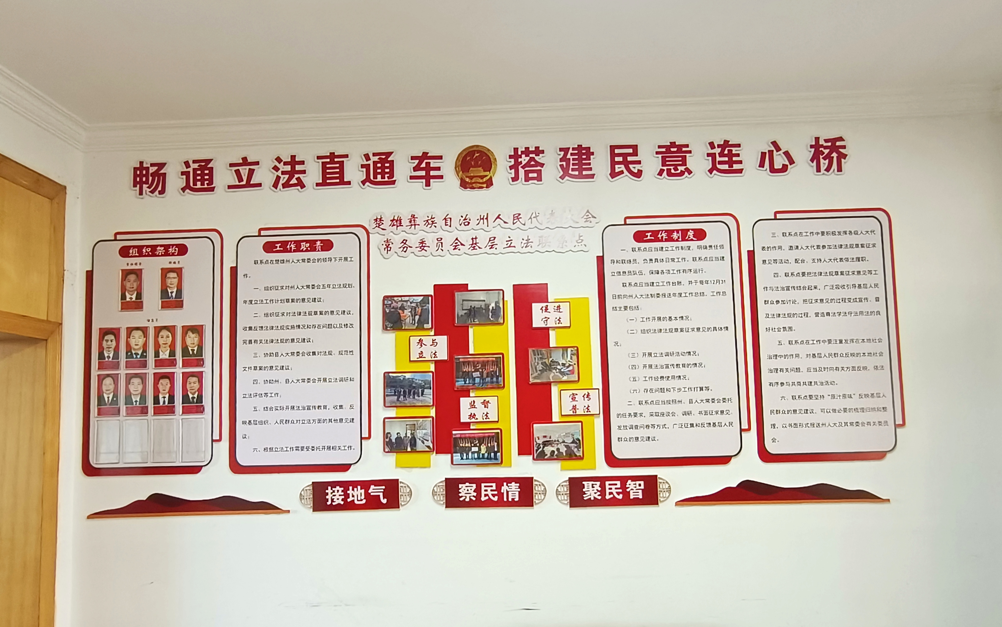 为了坚持和发展全过程人民民主,深入推进科学立法、民主立法、依法立法,扩大公民有序参与立法工作的途径和方式,12月14日,楚雄彝族自治州人民代表大会常务委员会基层立法联系点在法脿镇挂牌设立,该联系点是双柏县首个州人大常委会基层立法联系点。州人大常委会法制委主任委员高明新,副主任委员张翔会、刘建宏,县人大常务委员会及法脿镇相关同志参加授牌仪式。