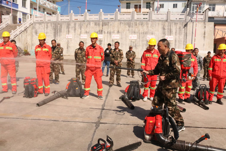 会后,全体干部职工、村委会四职人员、护林员和应急救援队员在乡文化广场进行防火演练,现场开展了防火器材使用培训,详细地讲解了森林火灾的危险性及相关防灭火知识,指导大家正确使用灭火器具,强化实操能力,在确保自身安全的情况下有效应对森林火灾。