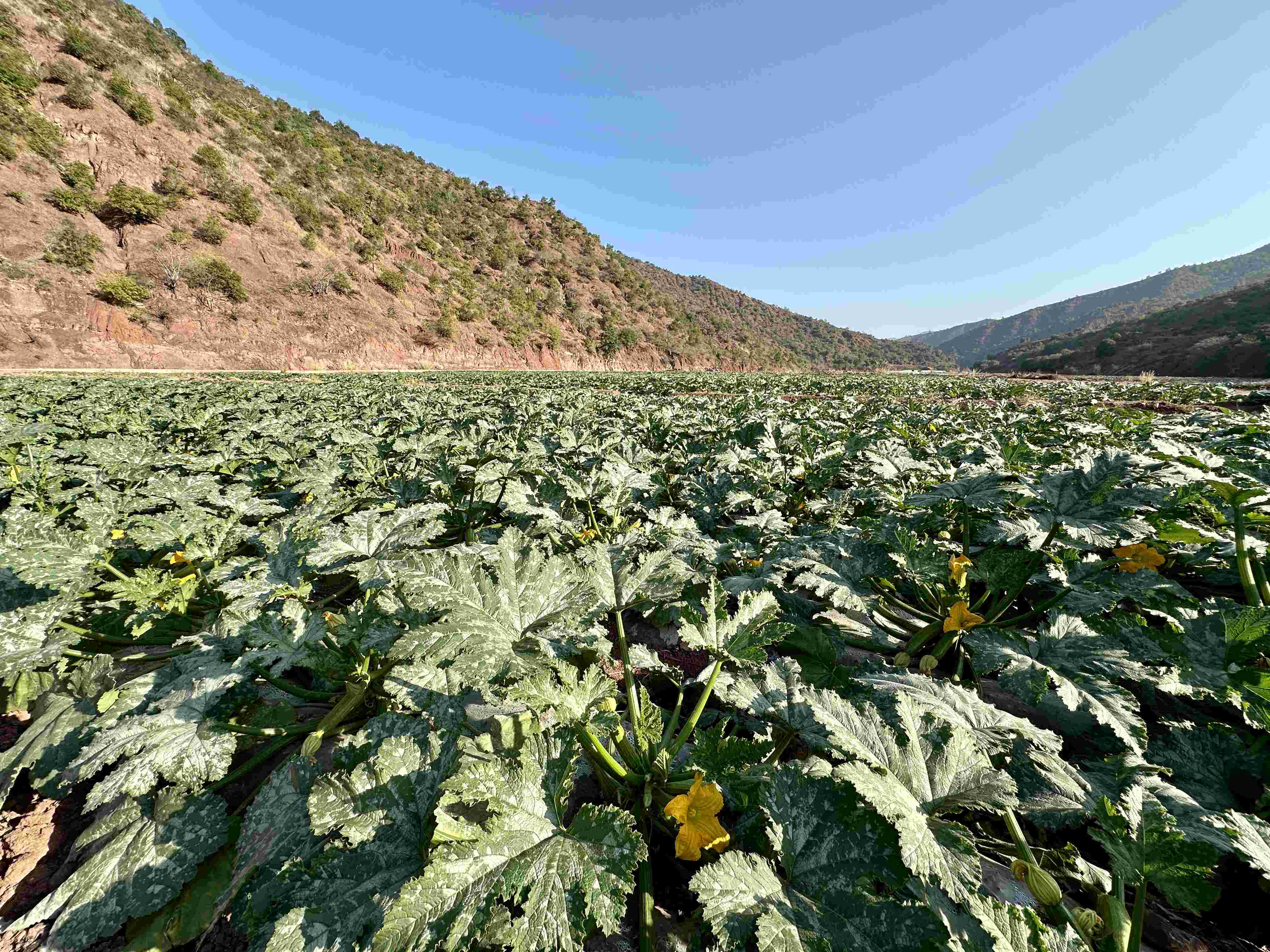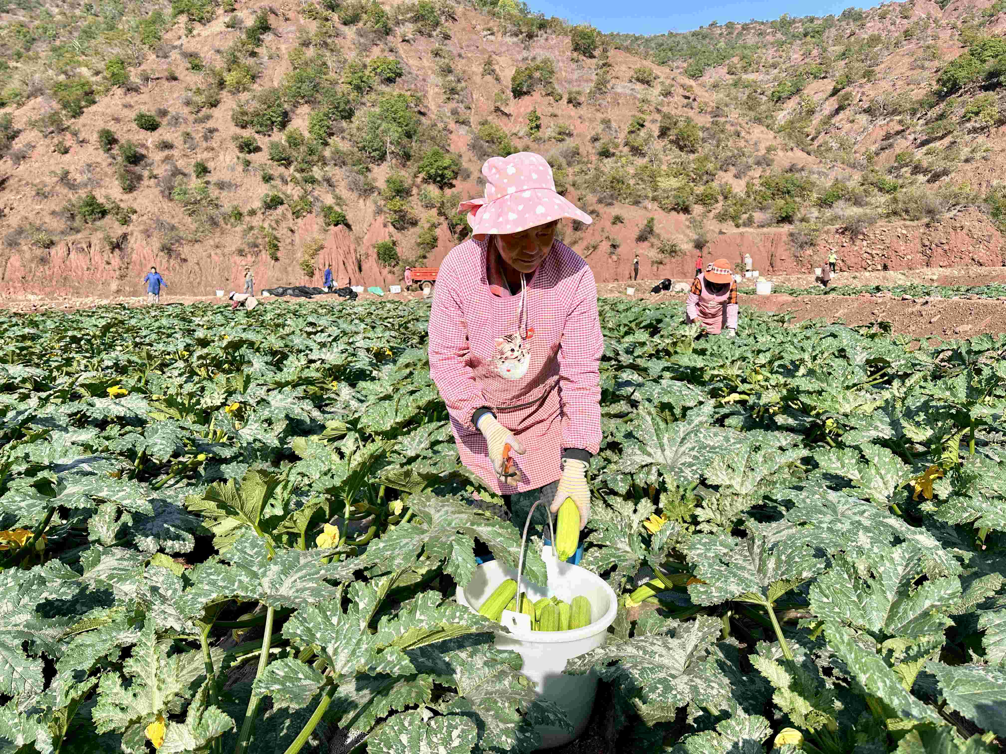 近日,在云南省楚雄彝族自治州双柏县大麦地镇河口河流域平坦广阔的土地上,一排排翠绿的西葫芦正在茁壮成长,齐膝高的瓜蔓之间,鲜艳的黄花与细长条的西葫芦交错生长,到处一片生机盎然的景象。