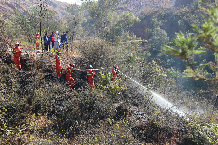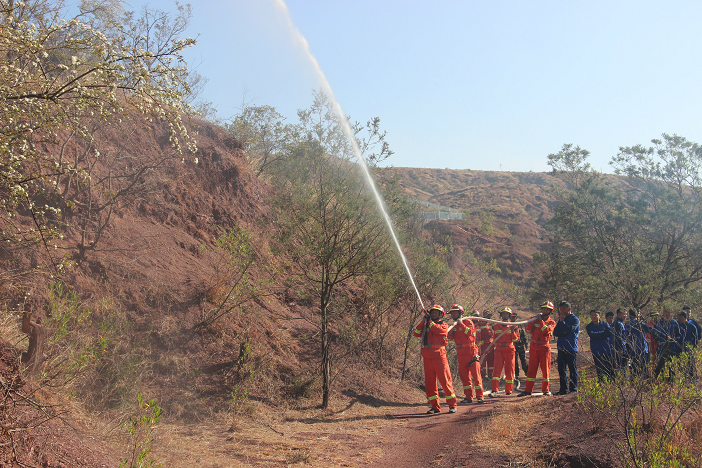 演练共出动消防水车2台、高压水泵2台、水带30卷、风力灭火机6台、各类保障车辆8台。演练过程中,各应急队伍接到指令后迅速集结、默契配合,采取“以水灭火”“七步九法”,运用水泵、水带、水枪等装备快速、安全、有序地进行了模拟扑救,同时做好安全撤离、余火清理、现场留守等后续工作。