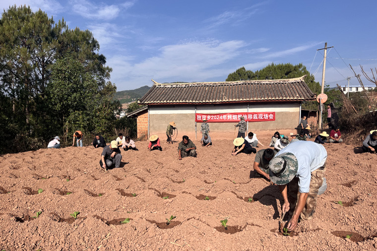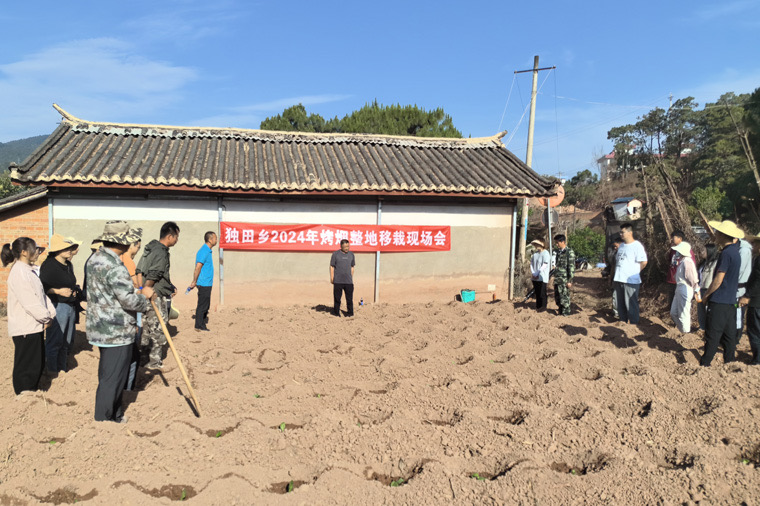 人勤春来早,眼下正值烟苗移栽的黄金时期,独田乡的烟农们铆足干劲,抢抓时节,积极抓好烟田整地、物资储备等各项工作,为烤烟移栽做好充分准备。4月19日上午,独田乡2024年烤烟整地移栽现场会在独田社区新开田村召开,就此拉开了全乡烤烟移栽序幕。乡党政班子成员、全体干部职工、各村(社区)党总支书记、烟叶站工作人员、烟农代表等共计50余人参加会议。
