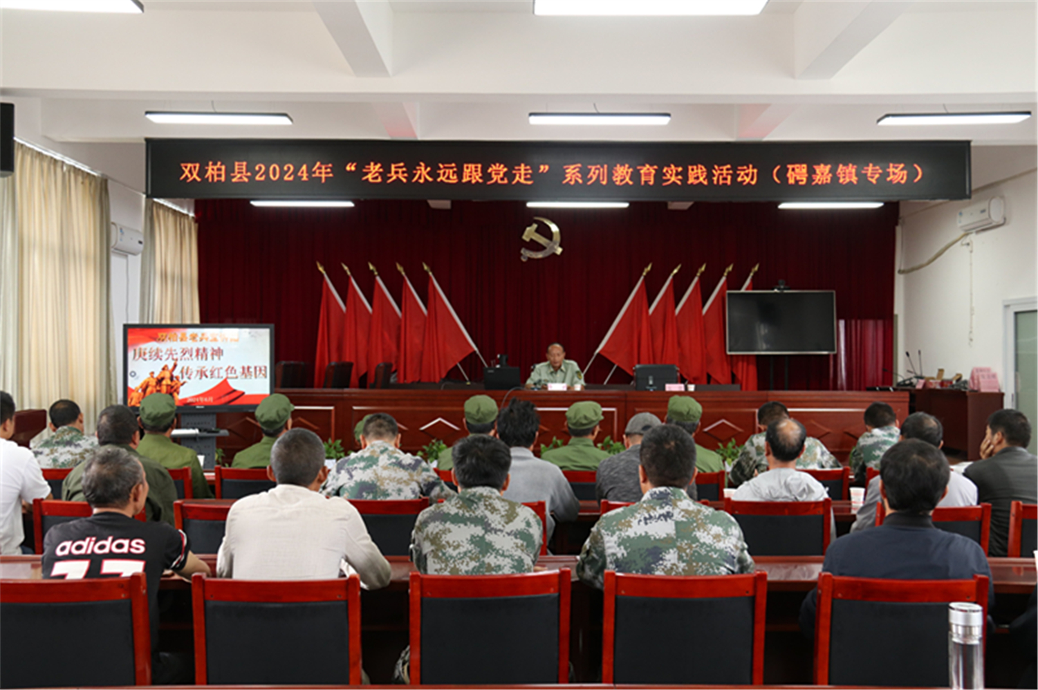 为持续深化爱国主义教育,积极引导广大退役士兵传承红色基因、厚植爱党爱国情怀,坚定理想信念,6月27日上午,双柏县老兵宣讲团到(石咢)嘉镇开展“老兵永远跟党走”系列教育实践活动。(石咢)嘉镇退役军人代表、两参人员共计50余人参加活动。