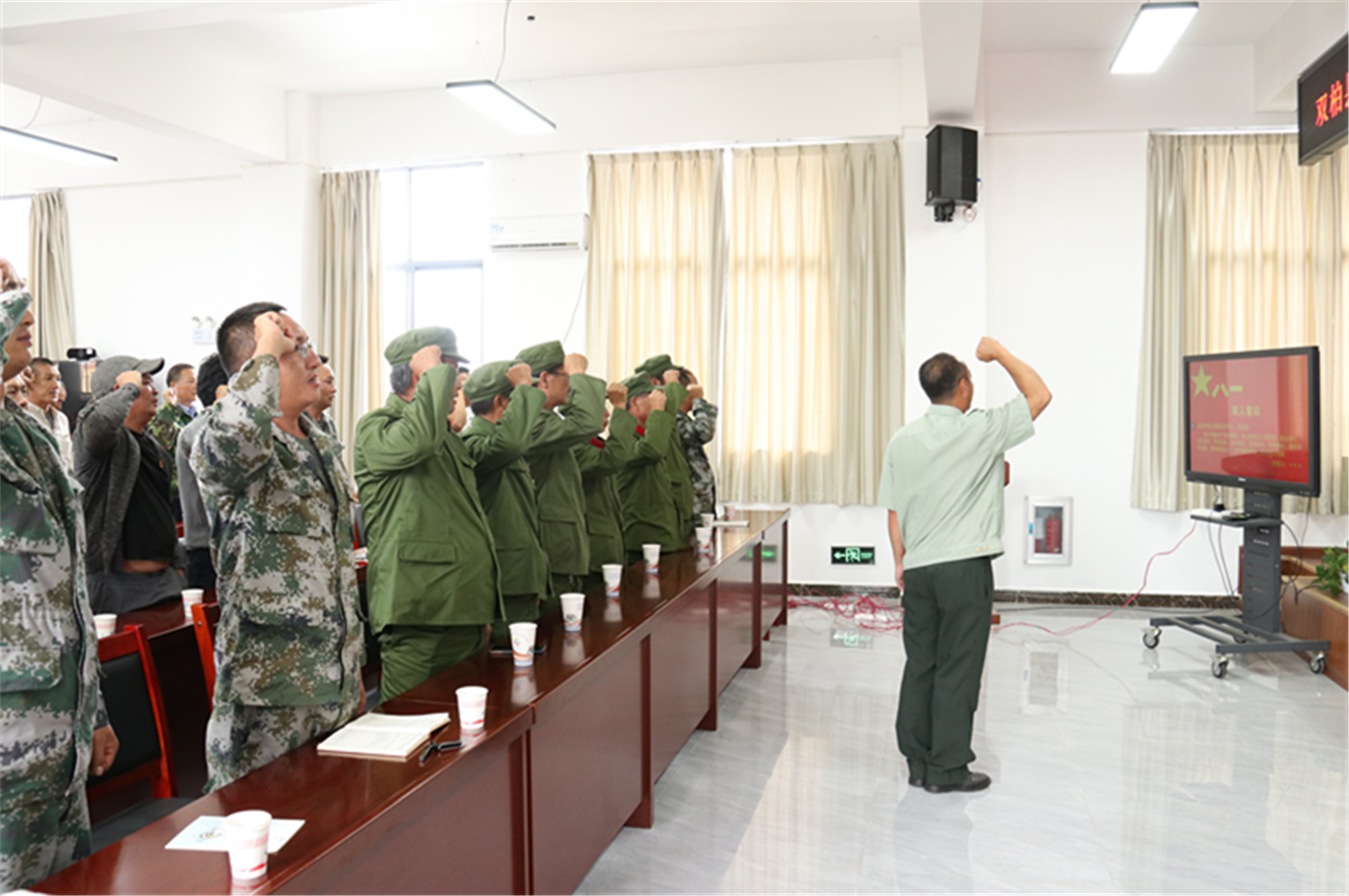 “我是中国人民解放军军人,我宣誓……”宣讲结束后,参会的退役军人们齐举右拳庄严宣誓,铮铮誓言在会议室回荡,那一束束热切的目光,饱含着对祖国的热爱之情和对党的忠诚之心。