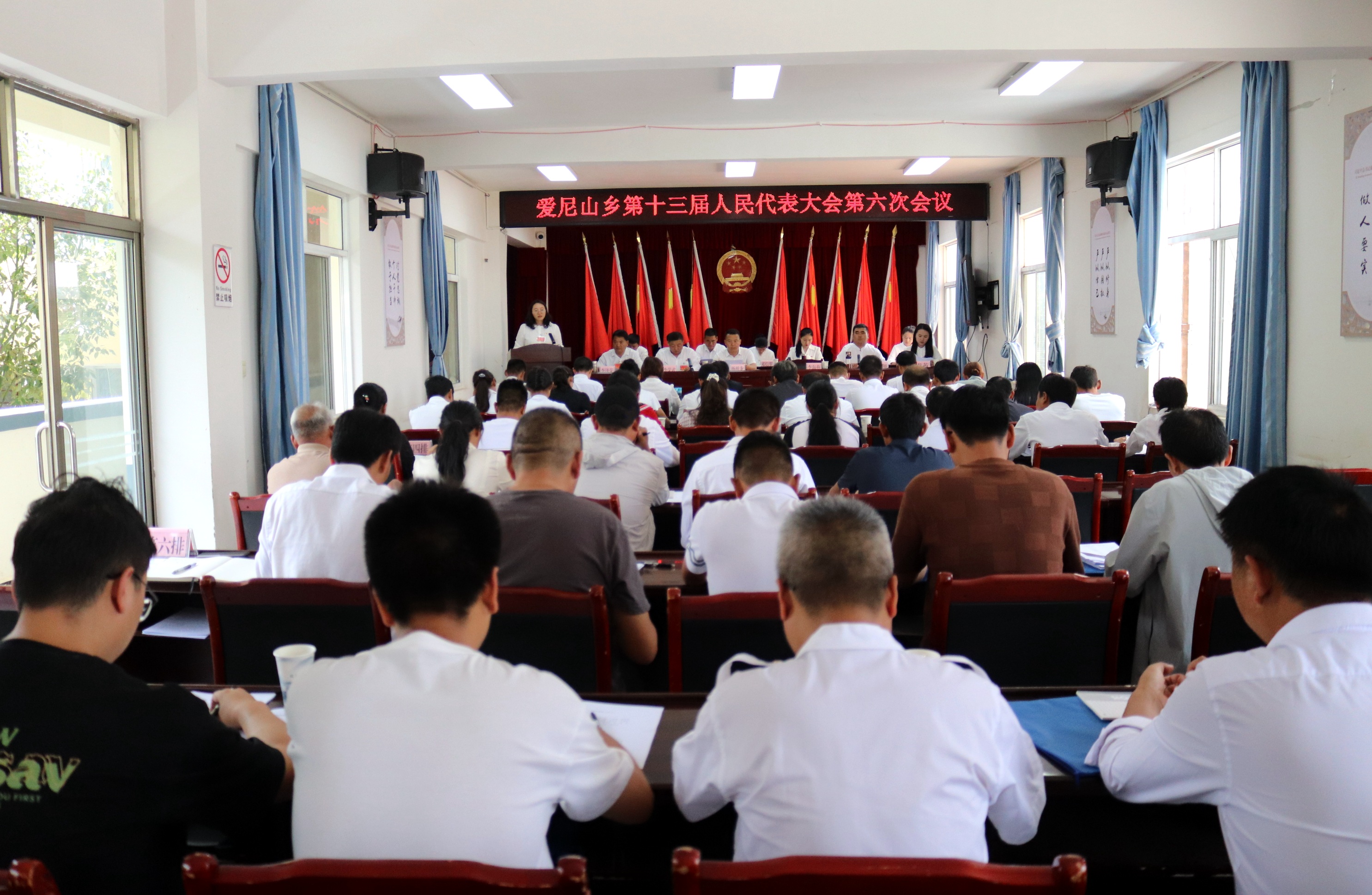 7月18日下午,爱尼山乡第十三届人民代表大会第六次会议圆满完成各项预定议程,在乡人民政府二楼大会议室圆满闭幕。乡第十三届人民代表大会代表、旁听、列席人员共80余人参加会议。