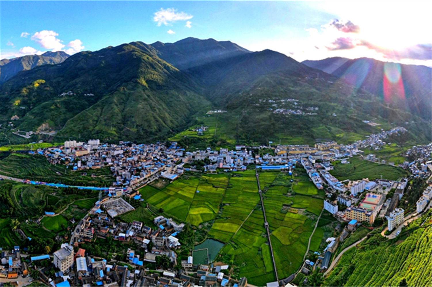 今天的(石咢)嘉天蓝、水绿、山青、路净,美丽的村庄如明珠般洒落在青山脚下、溪河之畔,全镇处处绿树环绕、鸟语花香,绘就了一幅宜居、宜业、宜游的美丽画卷。