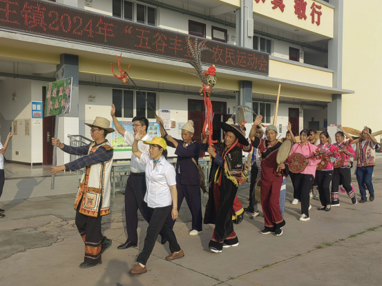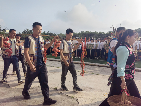 “五谷丰登”农民运动会成为当天活动的焦点,来自全镇的13支代表队,300余名运动员身着当地特色民族服装,手拿各村寨特色农产品和文创产品一一入场,充分展示当地各个村寨的发展特色和生产成果。