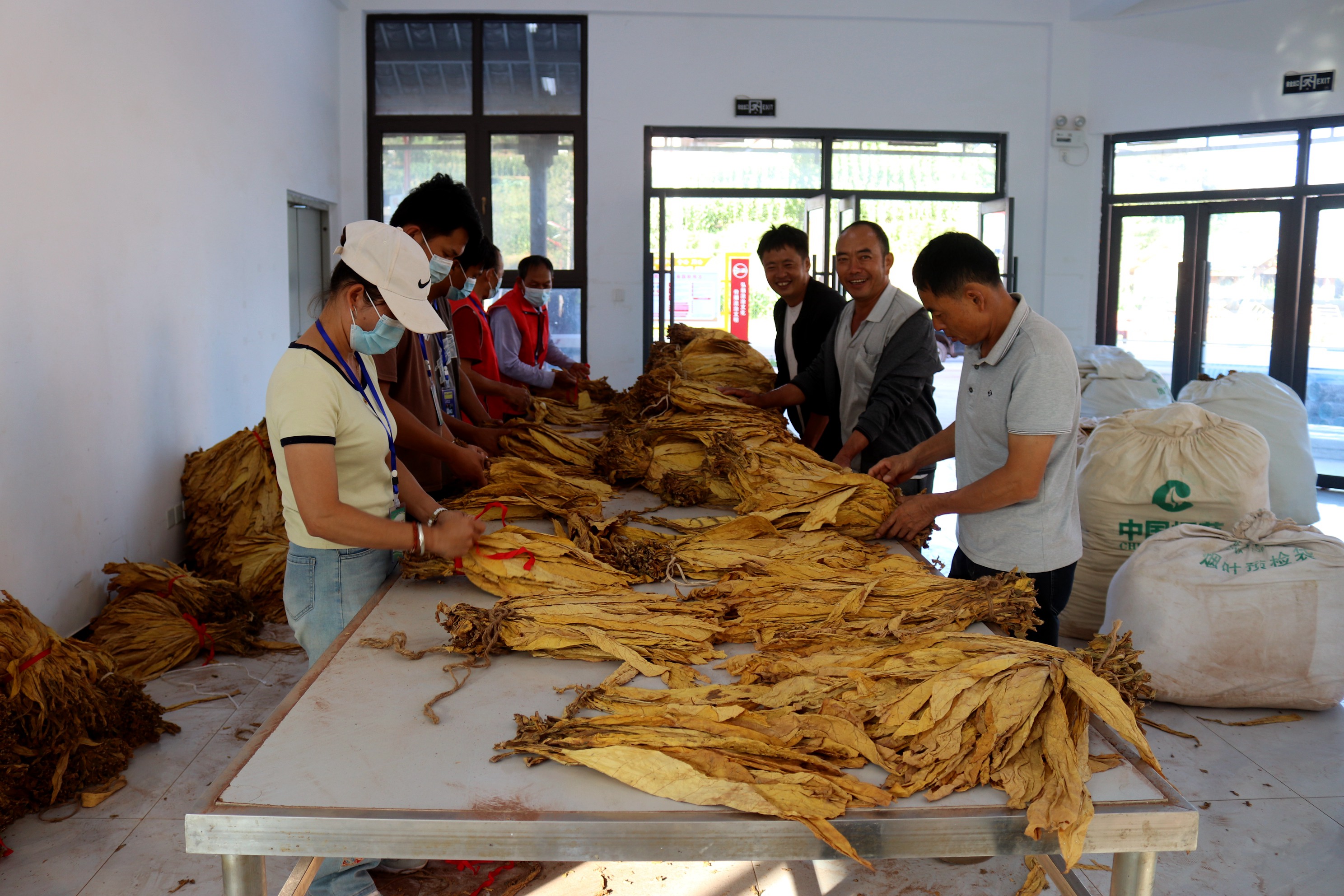 一大早,烟农们便满载烤烟前往收购点交售,工作人员有条不紊地对烤烟进行预检、分级、定级、过秤、打包、入库,收购现场繁忙而有序,浓浓的烟叶香弥漫了整个收购点。