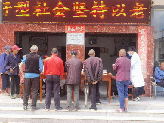 活动中,医务人员细心为大庄敬老院老年人记录体检信息、测量血压、身高、体重,普及“减盐、减油、减糖,健康口腔,健康体重,健康骨骼”三减三健知识,以此提高老年人注重健康,关爱家人的生活理念。同时,志愿者为老人普及医疗健康知识,发放医保宣传册,及时提醒老年人缴纳医保,为自己的健康保驾护航,社工们带领老年人开展益智活动。