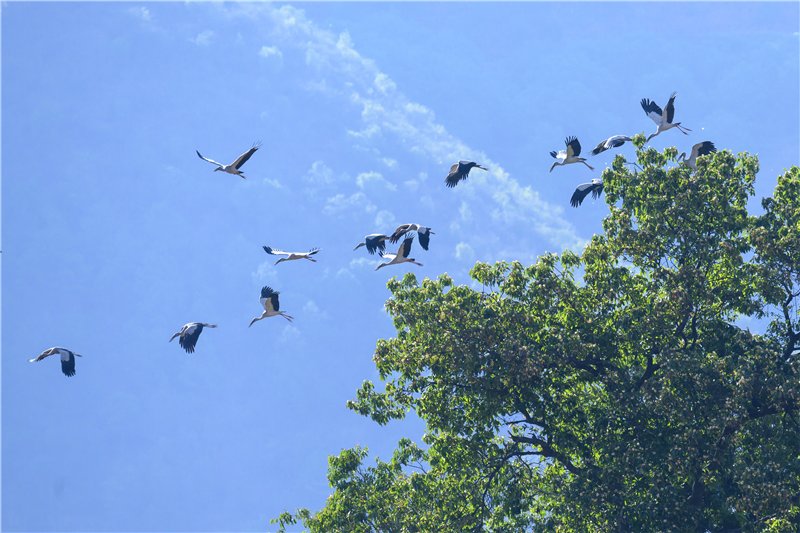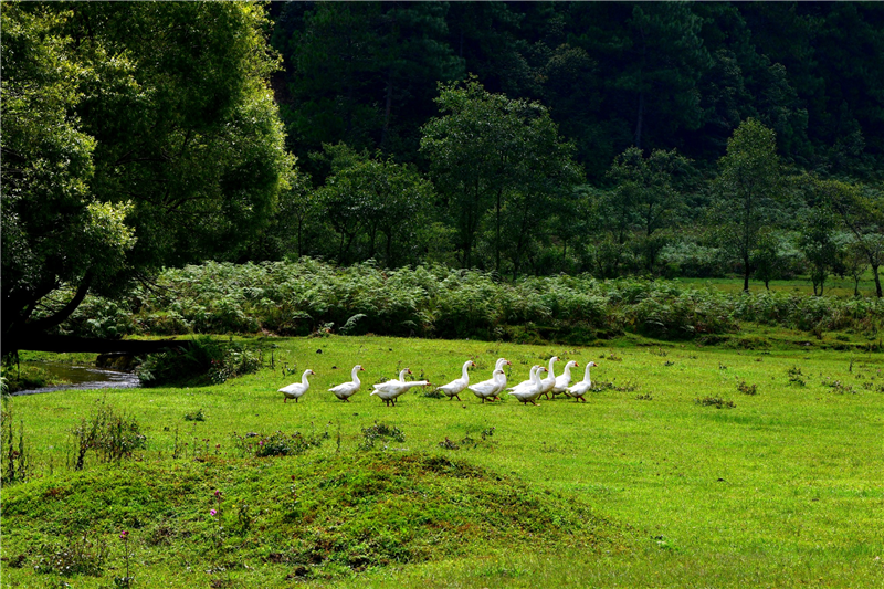 在九天湿地上演的“树上白鹭飞,水面鱼虾跃”的美景,正是(石咢)嘉镇推进湿地生态保护及修复的生动缩影,多年来吸引了多种珍稀鸟类到此繁衍生息。近年来,(石咢)嘉镇加强对湿地生态治理和环境保护,深入推进天然林保护修复、退耕还林还草、防护林建设、国家储备林建设等工程,积极开展造林绿化,至目前,龙树、茶叶、红山、新厂、平掌、麻旺、东凤、老厂、密架、义隆、新树11个村获评省级森林乡村,森林生态资源和生物多样性保护成效明显。蓝天白云下,绿草青青,牛羊成群;碧水清波旁,群鸟高声鸣叫,展翅翱翔,构成了一幅美丽的生态画卷。