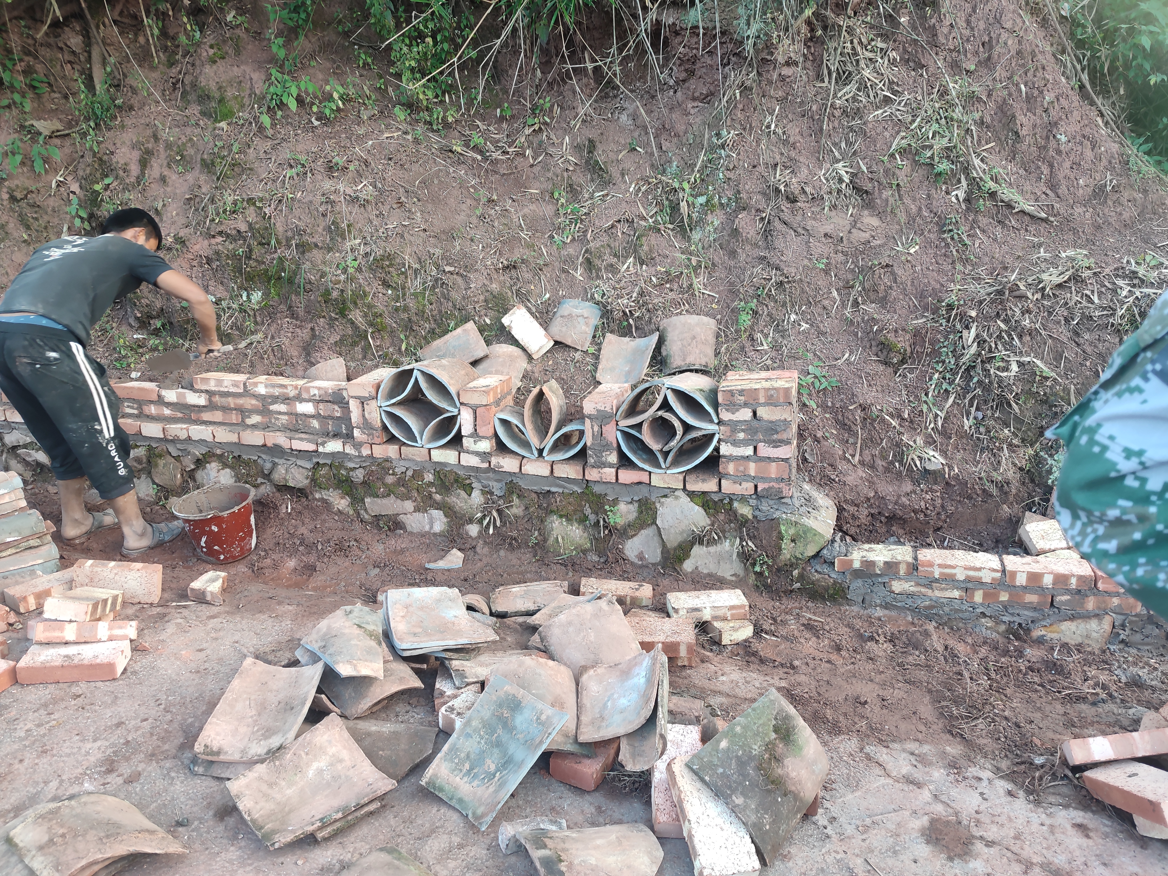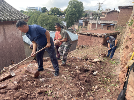 群众开着挖机、铲车,有技术出技术,有力气出力气,忙碌在村子的各个角落,在专班组的带领指导下,规划暗沟、镶砌挡墙、安装护栏、栽种花草……