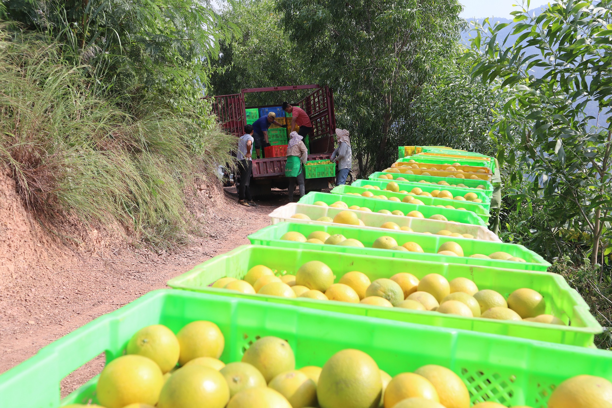 11月正是冰糖橙丰收的时节。在双柏县爱尼山乡把租村委会大大小小的冰糖橙种植基地里,一车车满载着冰糖橙的卡车从种植基地出发,将果子送往附近的选果厂,经过柑橘分选线的红外无损内质检测,进行筛选、分级、装箱后,这些大山里的“甜蜜”滋味即刻被运往省内外的大型商超。