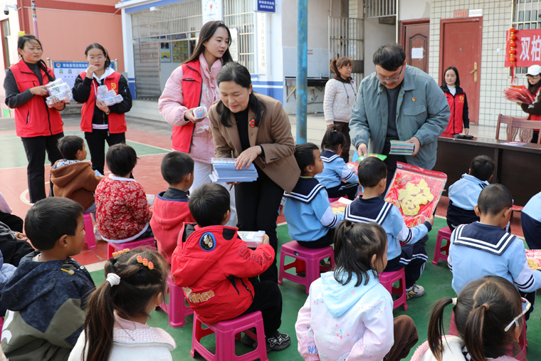 为切实做好2025寒假儿童关爱服务活动相关工作要求,呵护孩子们度过一个欢乐祥和的春节和有意义的假期,1月8日,由双柏县妇联、共青团双柏县委、双柏县人民检察院、独田乡妇联等部门组成的巾帼志愿者们,在独田乡的冬日暖阳中,开展双柏县2025“把爱带回家 同心护成长”寒假儿童关爱服务活动。双柏县人大常委会副主任、县妇联主席李喆参加活动。