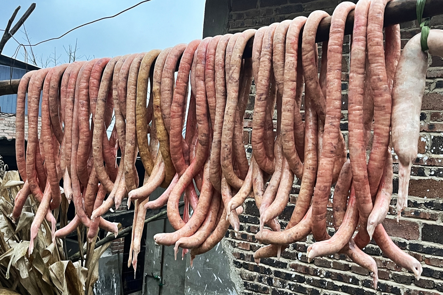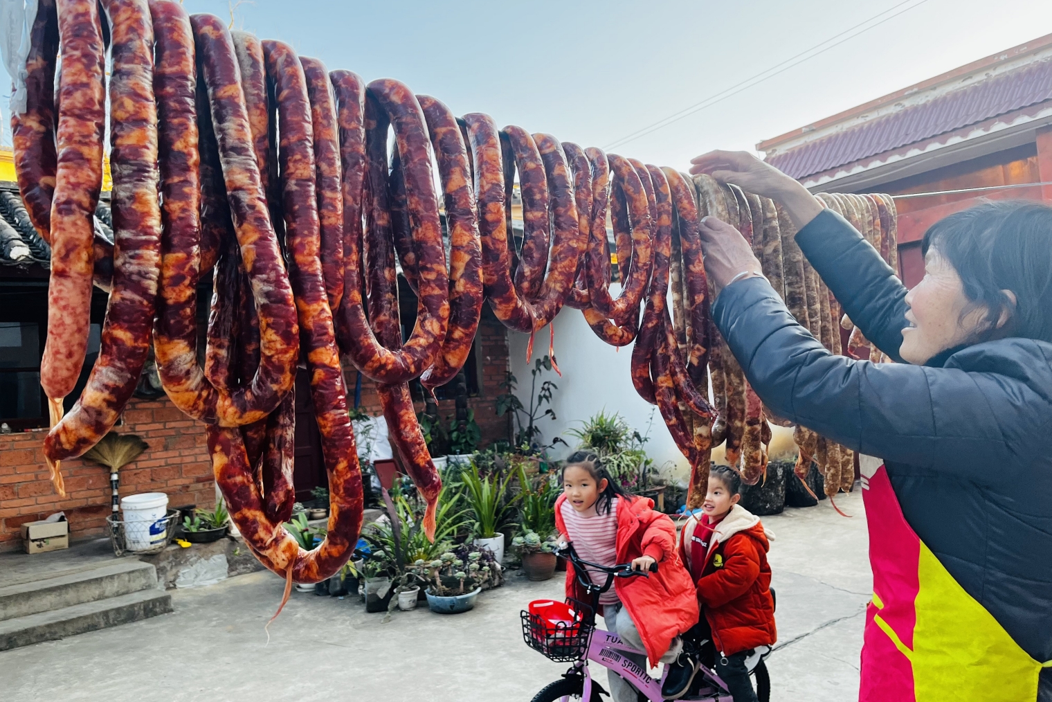 春节将至,外出的游子陆续归家。美味的杀猪饭后,装香肠开始提上日程。
