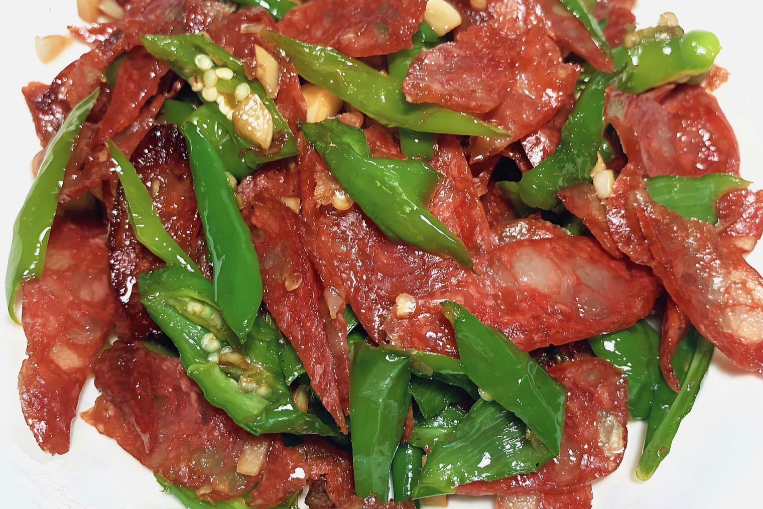 香肠的食用方法很多,可蒸可煮,也可以直接切片,配上辣椒或蒜苗等,用食用油煎炒。年夜饭,少不了一盘色香味俱全的香肠,一口下去,唇齿间弥漫的,是满满的年味。