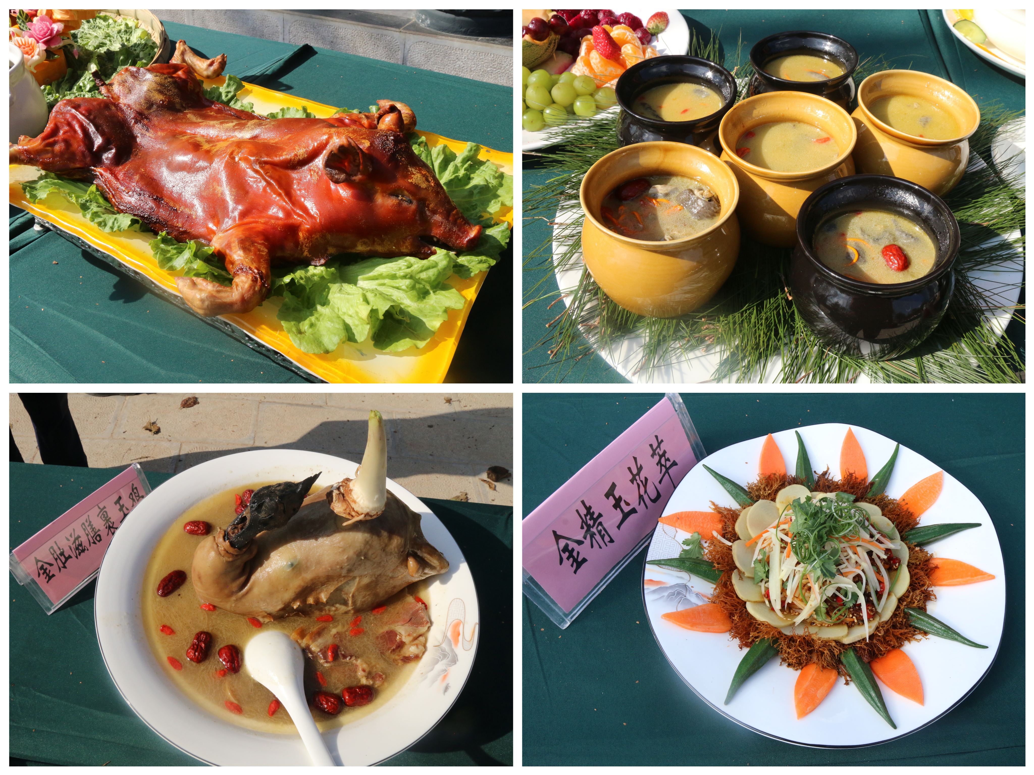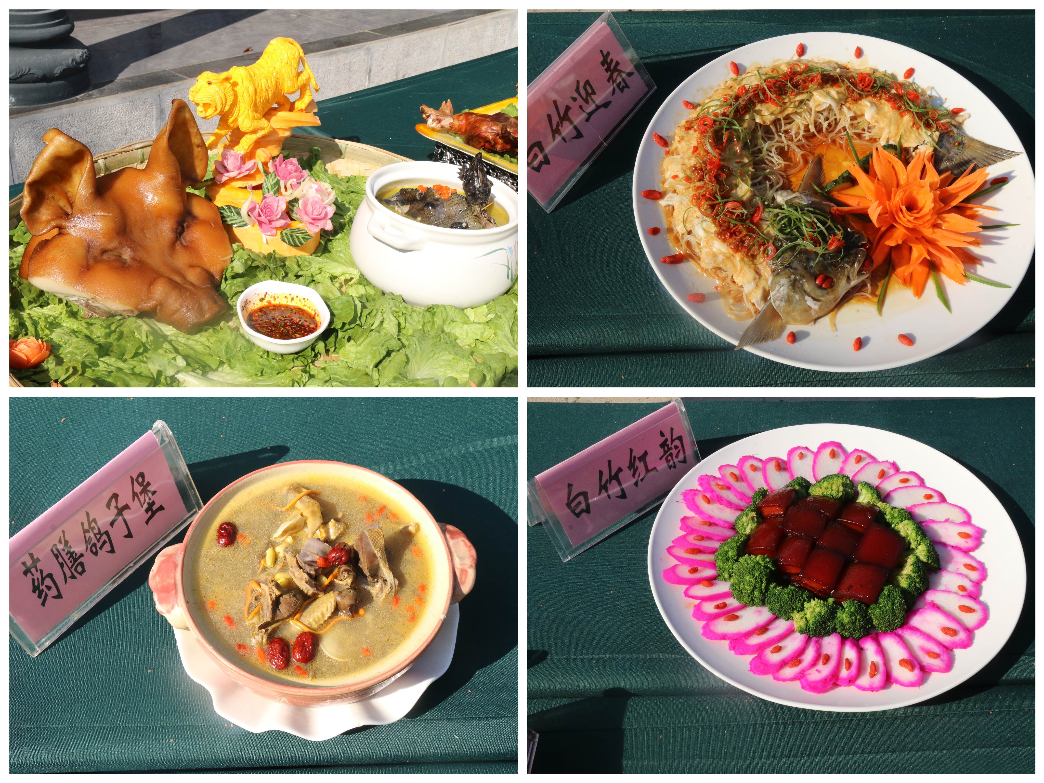 金精玉花萃、龙凤呈祥、白竹龙凤汤……美食大赛现场,来自法脿镇的10家餐饮企业的大厨们纷纷拿出十八般武艺,围绕色、香、味、形精心烹制药膳美食,各色菜品依次呈现,药香四溢,让人垂涎欲滴。