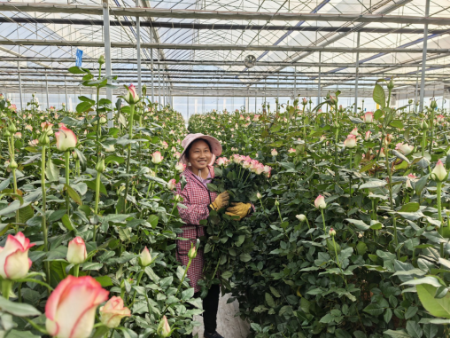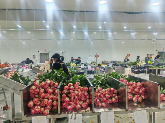 如今,数字花卉产业的蓬勃发展,大庄鲜花的规模化、标准化和产业化发展,不仅提升了鲜花附加值,为大庄镇带来了可观的经济效益,也为乡村产业振兴注入了新活力。数据显示,大庄数字花卉产业园年产超7000万支玫瑰,企业年产值7000万元左右。还为当地村民提供了稳定收入来源,企业每年吸纳本地务工人员100余人,常年用工400多人,用工人员月工资平均3200元,为村民提供近4万元的人均收入,同时,产业园还为务工人员提供免费的员工宿舍和食堂,产业园让周边村民就近就业有了好去处。