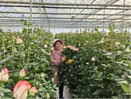 大庄镇花卉产业崛起,离不开科技的强力支撑。数字花卉产业园引入先进的智能化种植系统,艾莎、苏菲宝贝、洛神等40多个适应市场需求的高端玫瑰品种,通过精准的温控、灌溉和施肥技术,确保每株花卉都能在最佳环境中生长。科技赋能,让每朵鲜花都“绽放”更高的品质和价值。