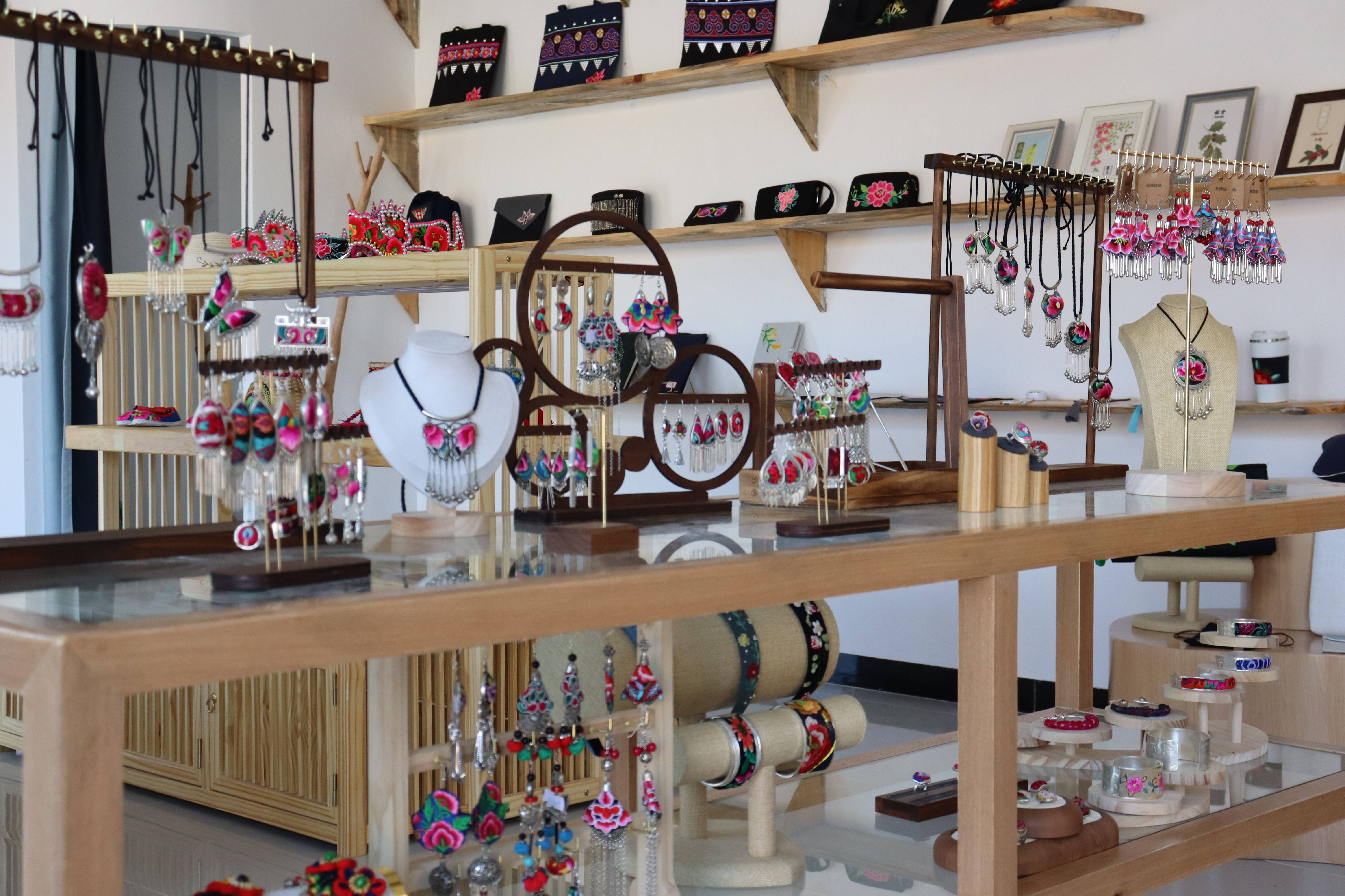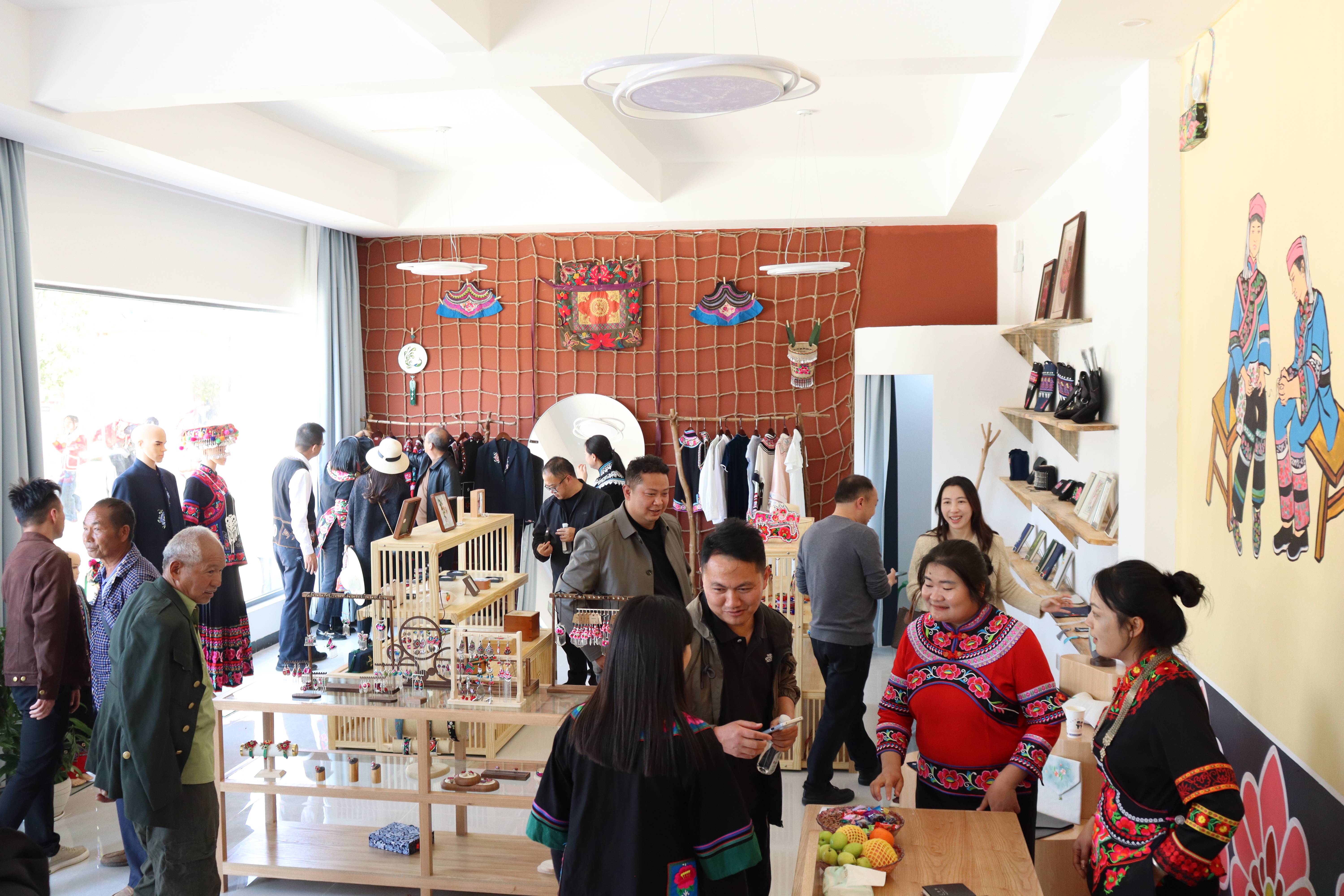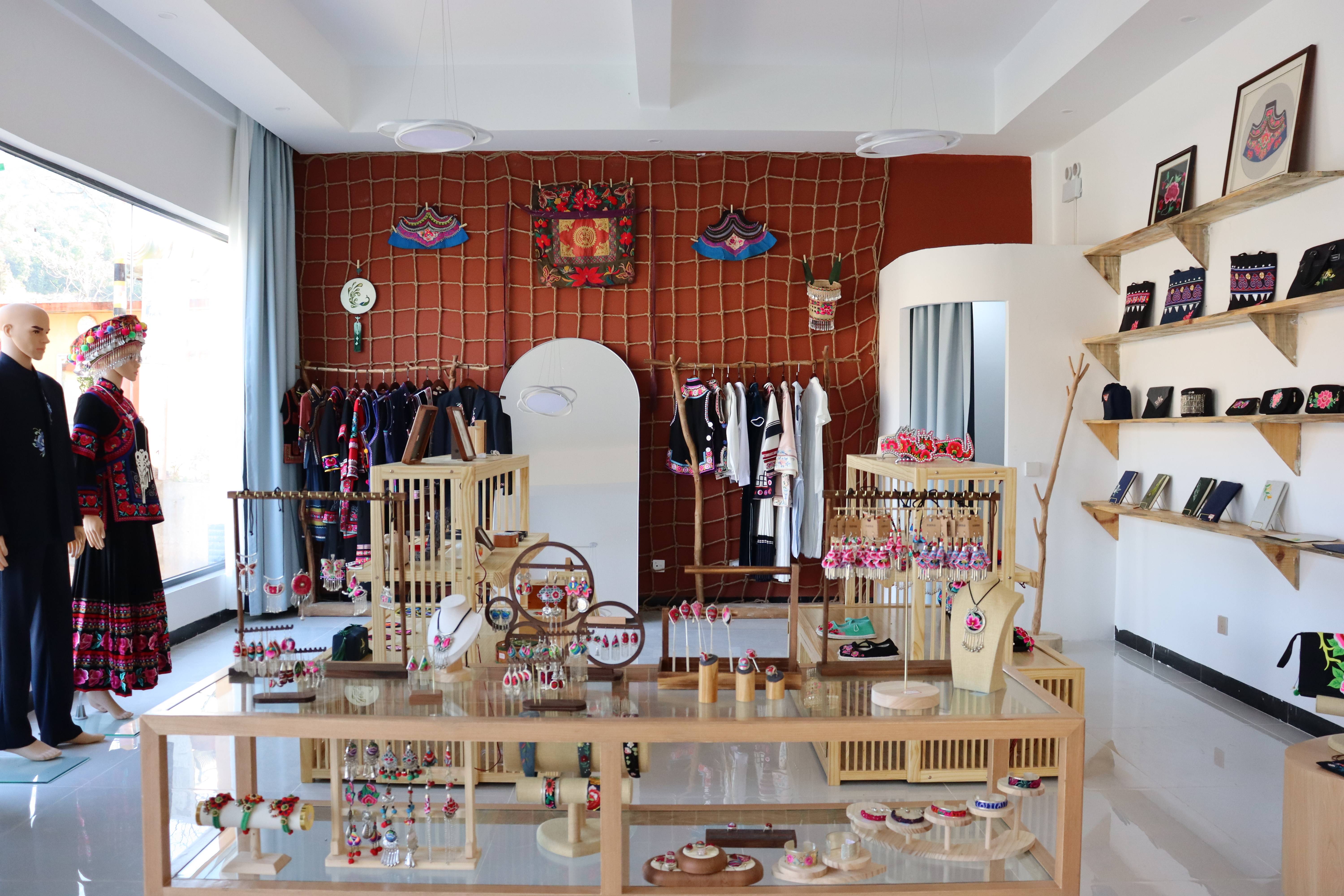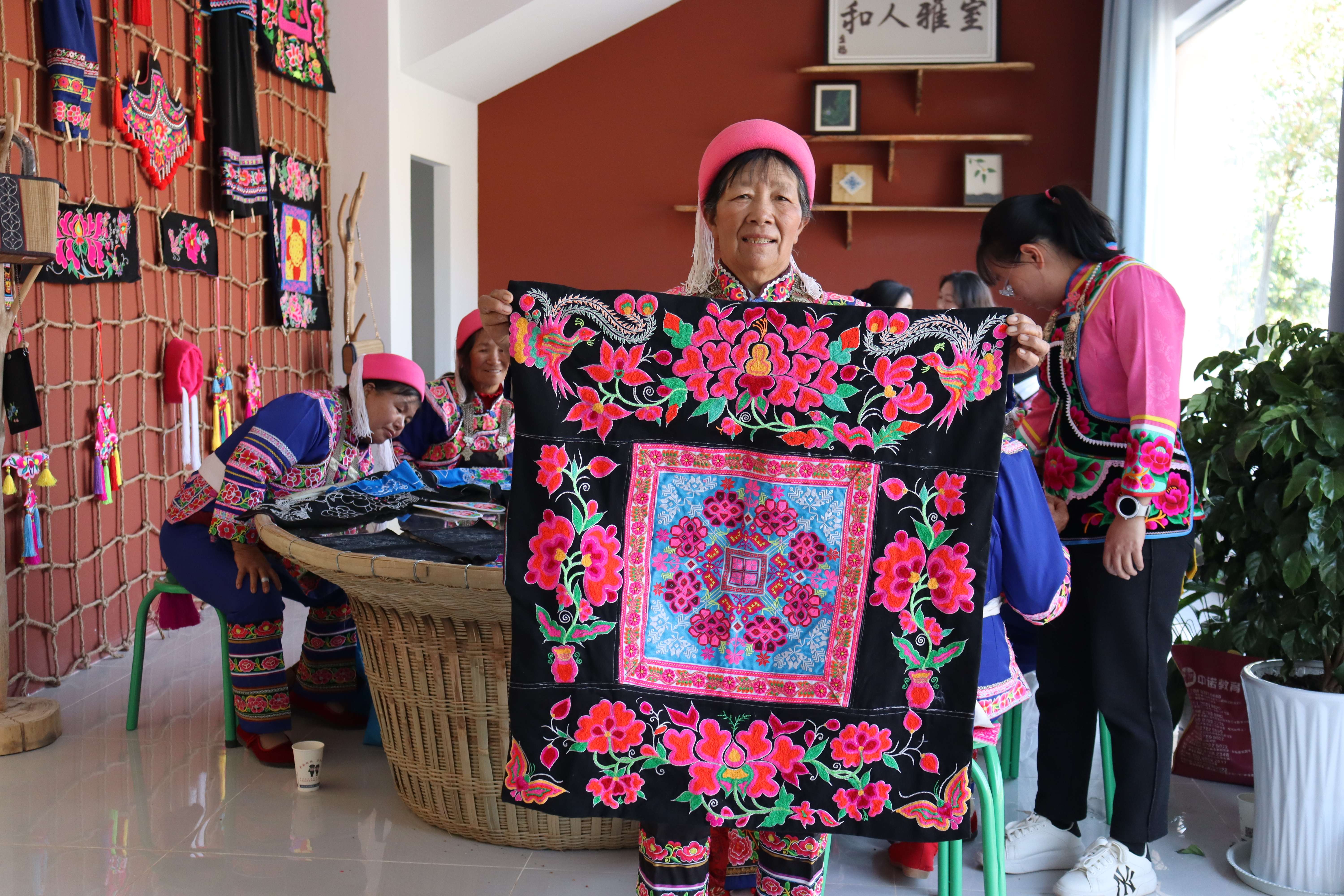 开馆当天,数百件彝绣产品惊艳亮相,各类刺绣成品琳琅满目,茶巾、手工包、枕套、衣裙、绣花鞋、抱枕等产品应有尽有。从色彩艳丽的花鸟鱼虫,到古朴神秘的图腾纹样,每一件产品都展现了传统刺绣工艺的精湛与细腻,凝聚着彝族妇女的智慧和匠心,诉说着彝族悠久的历史和灿烂的文化。同时,彝族妇女还巧妙地将现代审美理念融入其中,使这些产品既具有浓郁的传统韵味,又不失时尚气息,呈现出独特的艺术魅力和观赏价值。